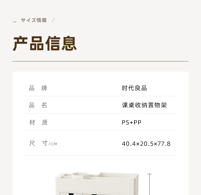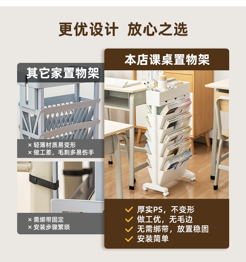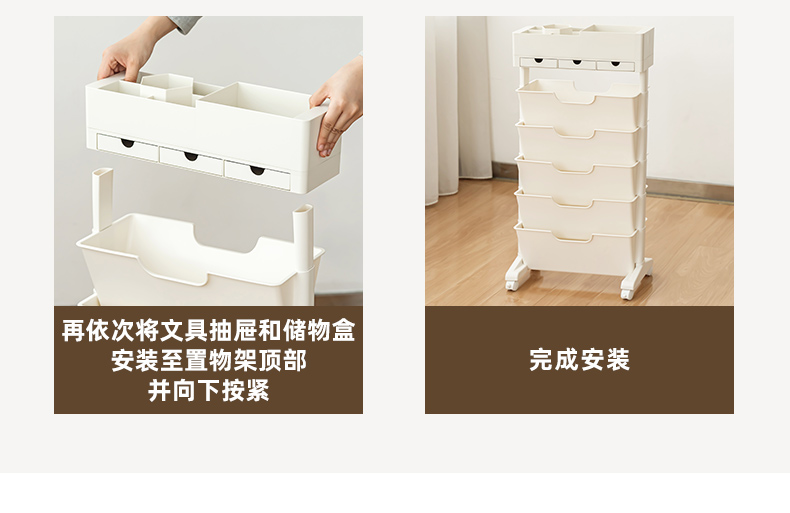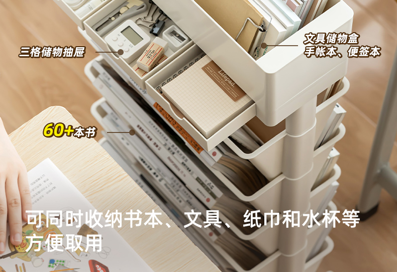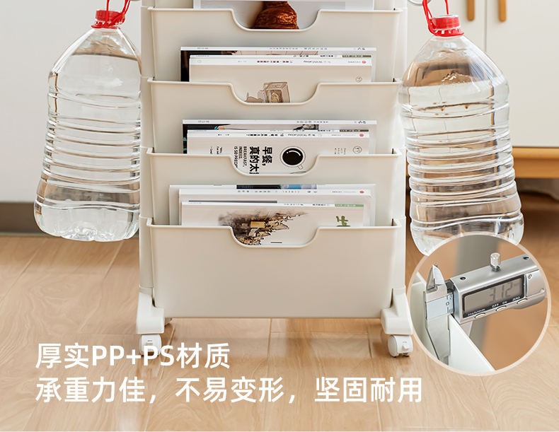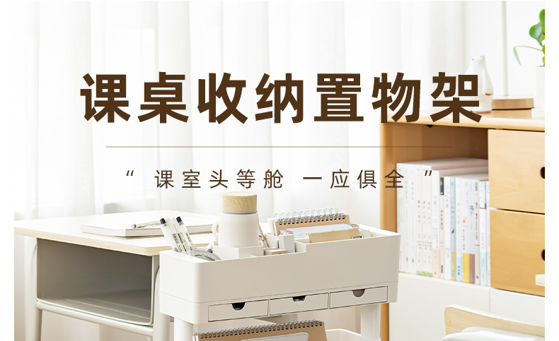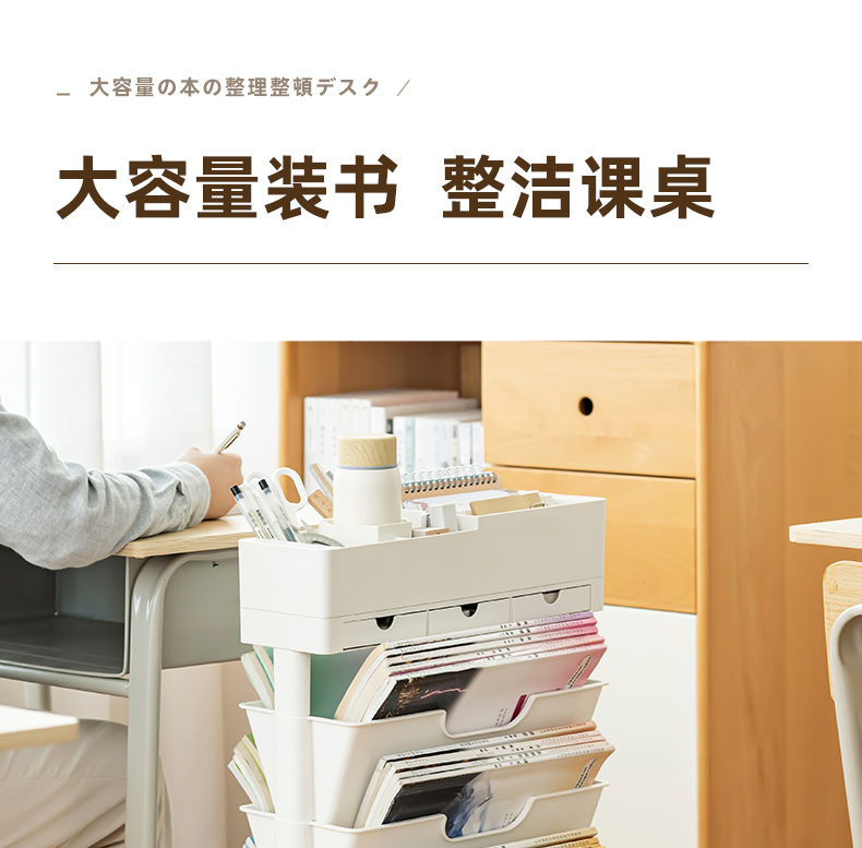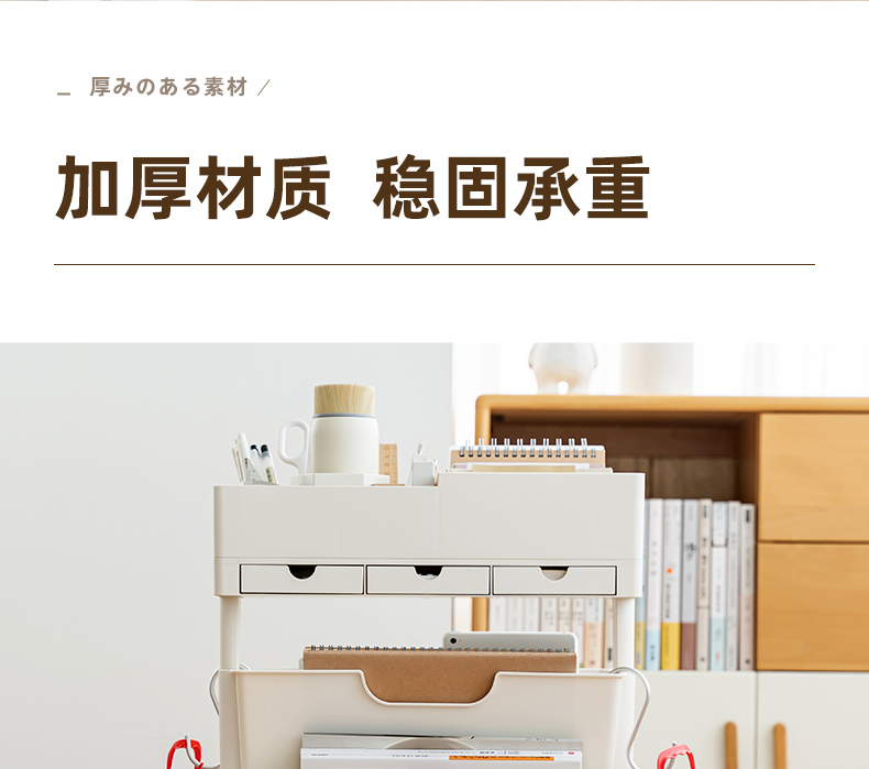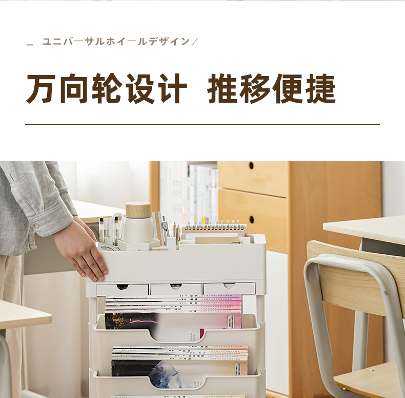 時代良品(SDLP)掛袋書立架 白色-三抽屜帶輪款 SD-9158