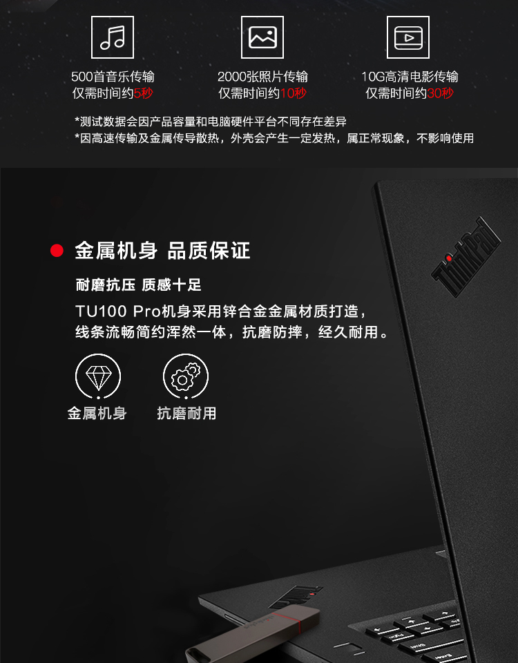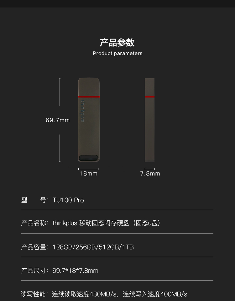 聯(lián)想(thinkplus)1TB USB3.1 U盤TU100灰色