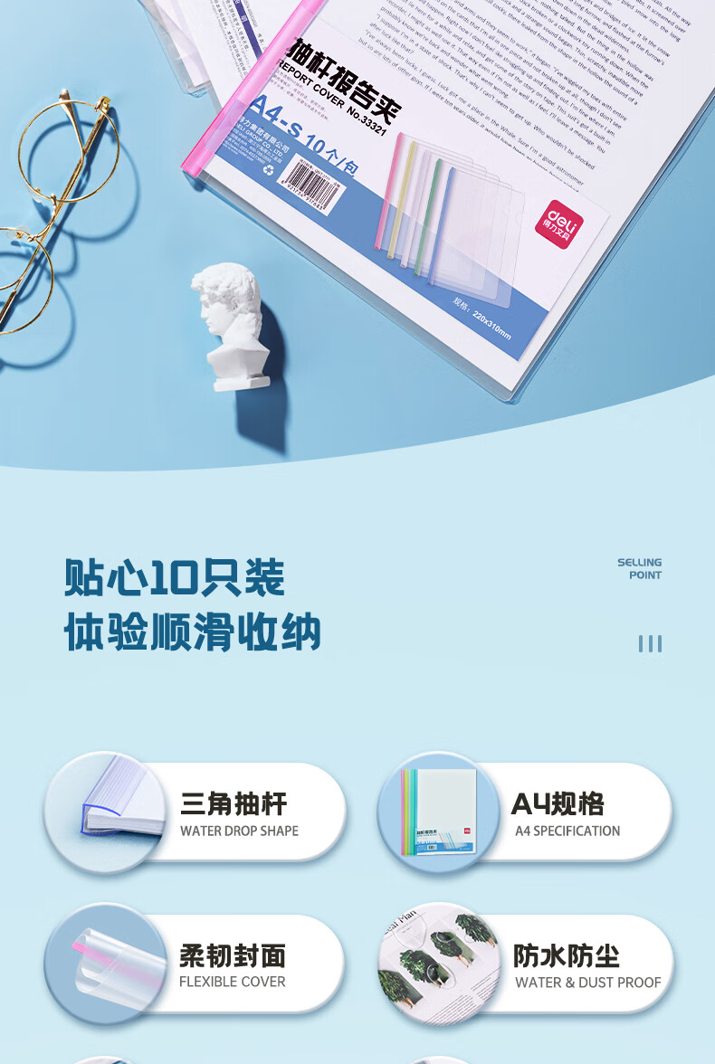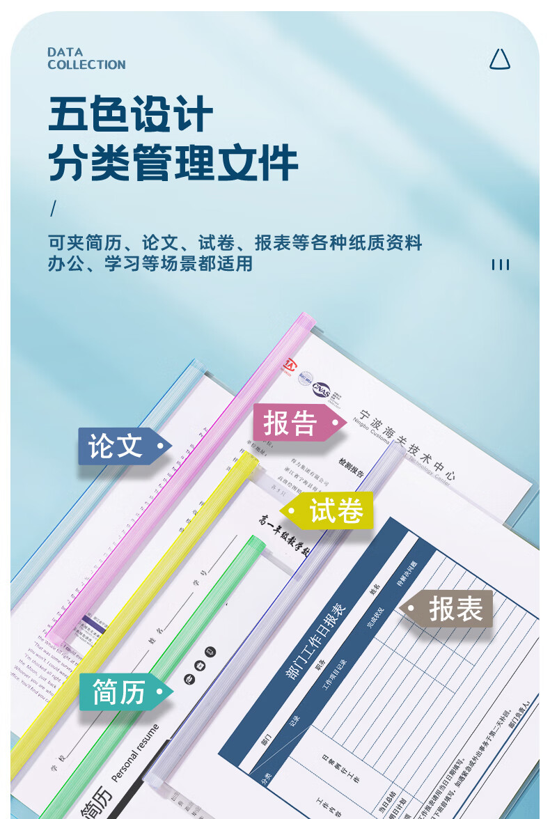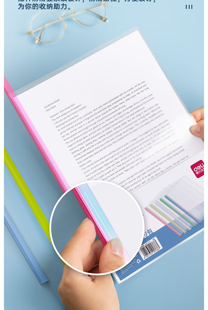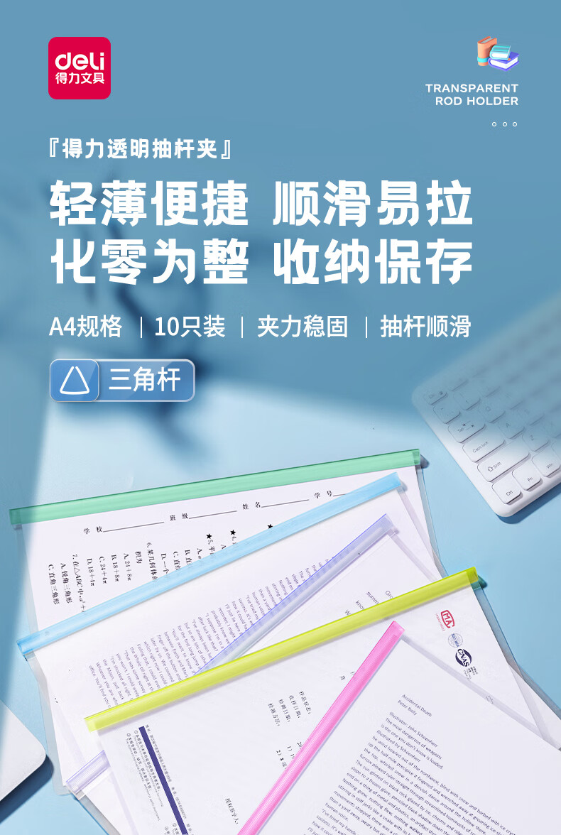 得力(deli)10只A4透明拉桿夾 5色裝33321