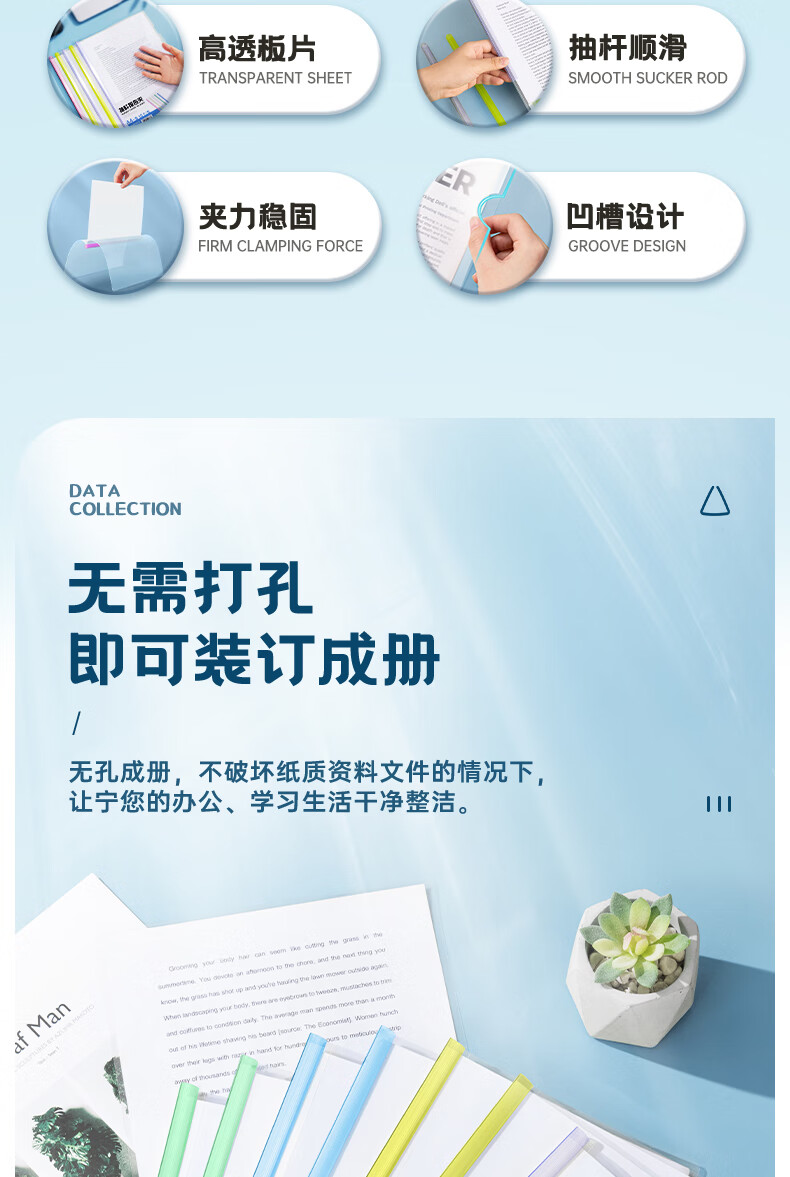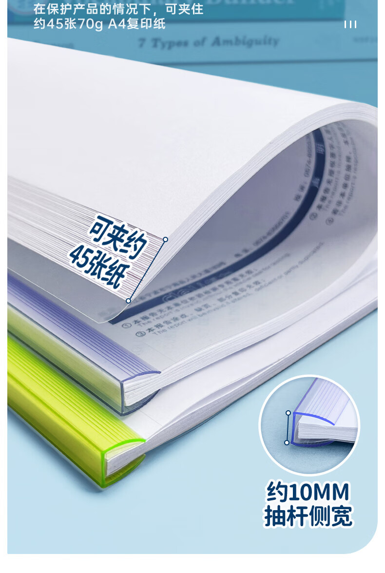 晨光(M&G) ADM94520 A4透明抽桿夾文件夾報(bào)告資料夾拉桿夾10mm 10個(gè)/包 顏色隨機(jī)