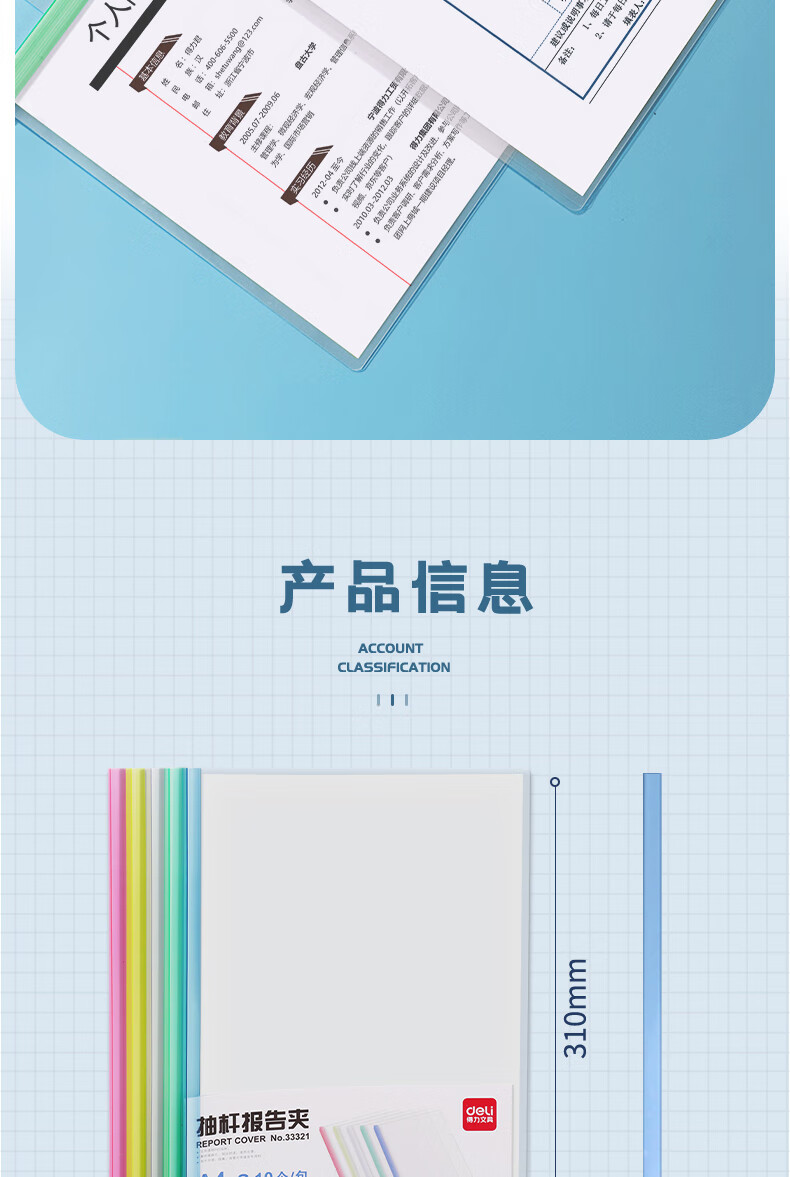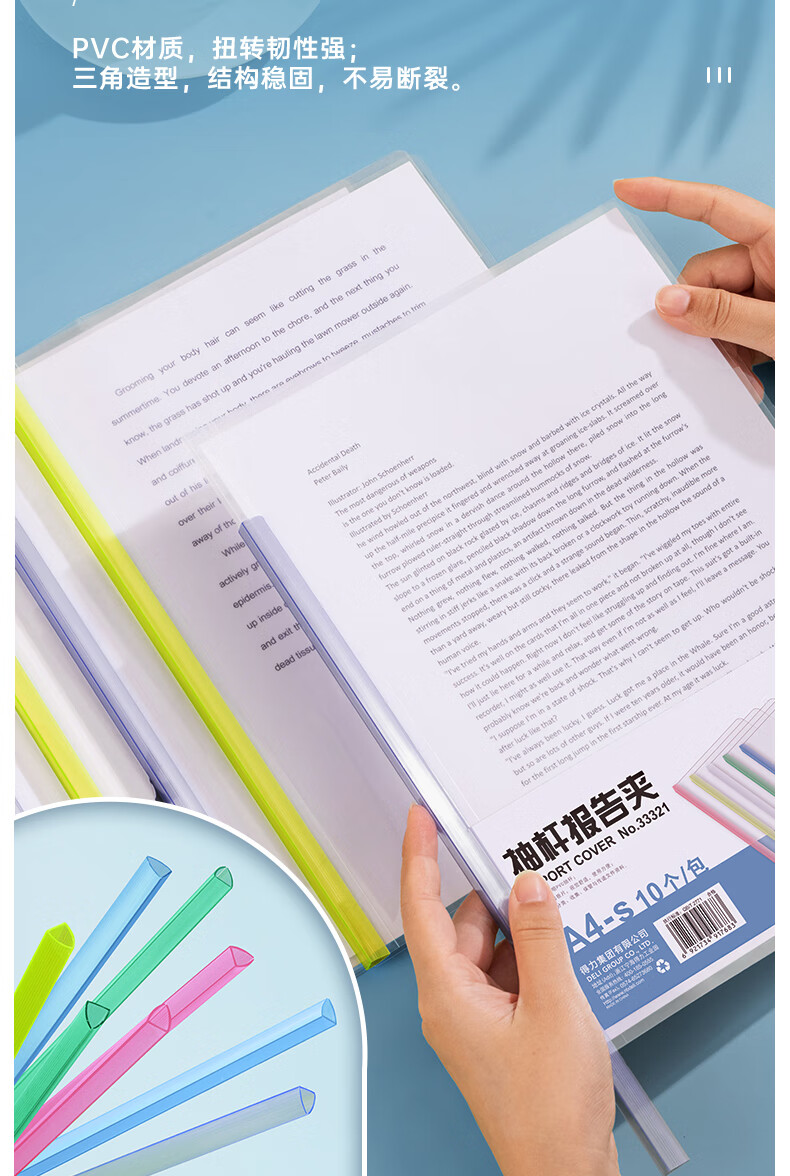 得力(deli) 5546 A4半透明報(bào)告夾板夾 抽桿夾 單只裝 顏色隨機(jī)