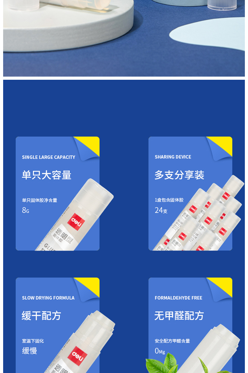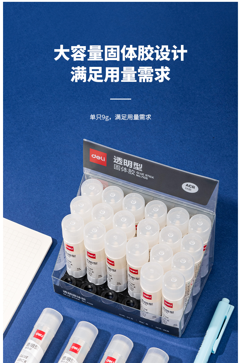 得力(deli)8g透明色ACR固體膠水24支裝 7106
