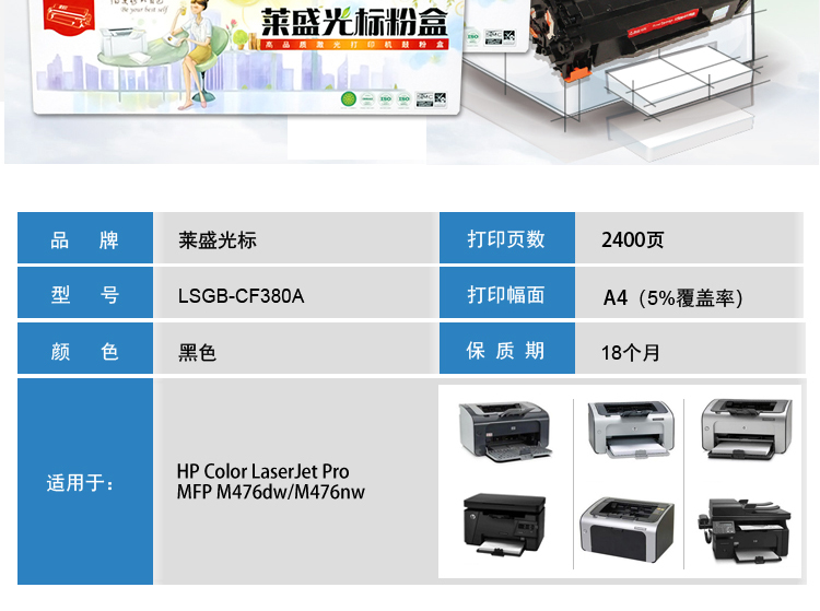 萊盛光標(biāo)LSGB-CF380A 粉盒 適用于 HP Color LaserJet Pro MFP M476dw 黑色