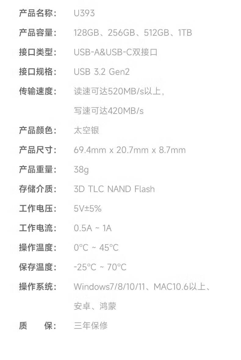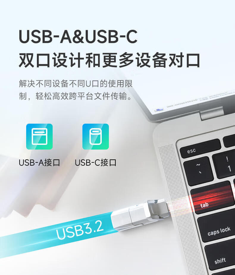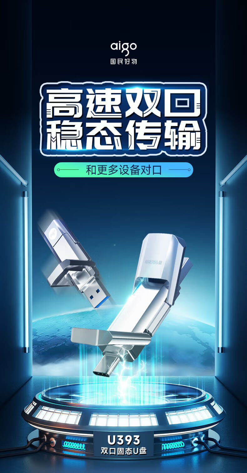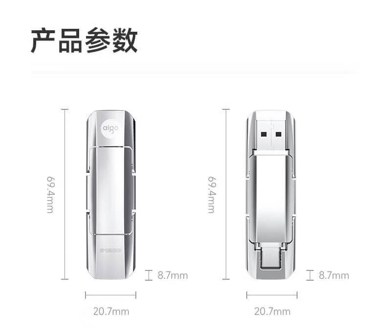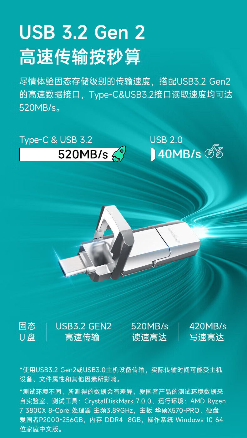 愛國者(aigo)256GB USB3.2 Type-C雙U口 高速固態(tài)U盤 U393