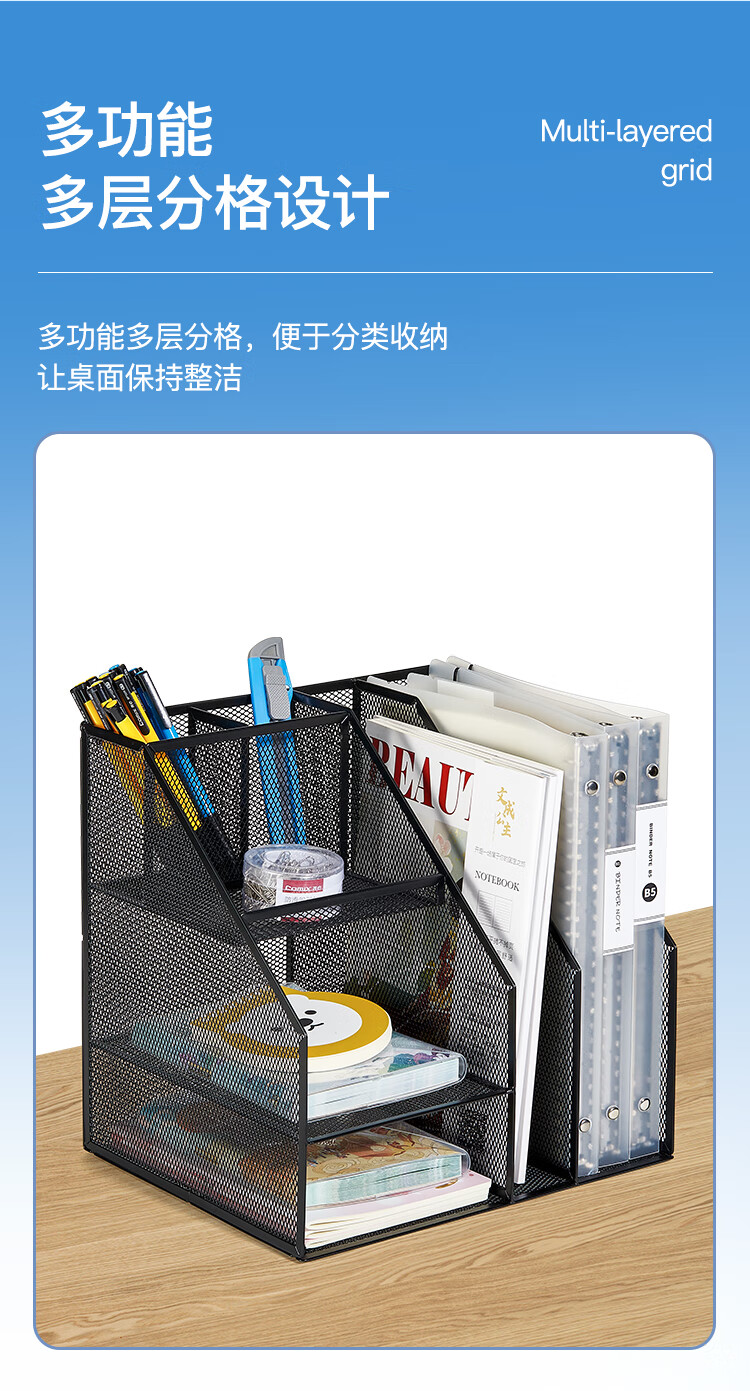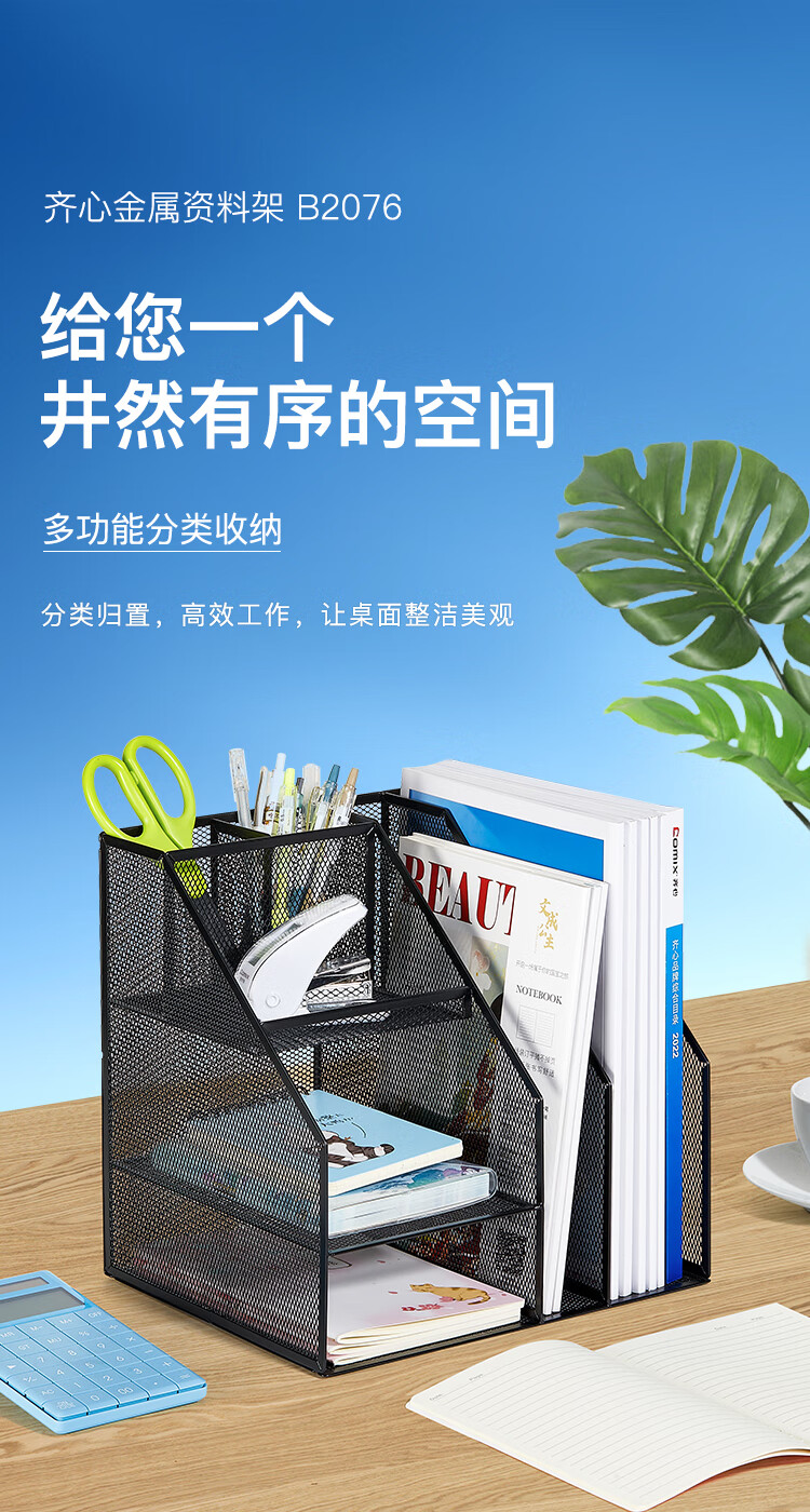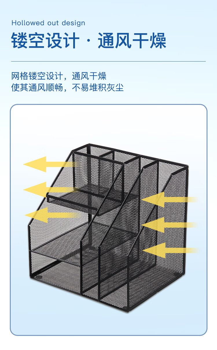 齊心(Comix)多功能7格金屬筆筒 黑色B2076