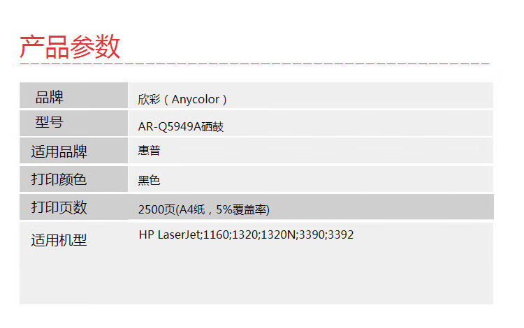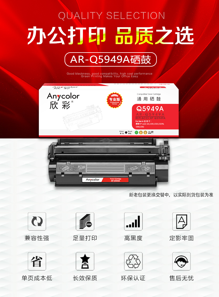 欣彩 Q5949A硒鼓 49A 專業(yè)版 AR-Q5949A適用惠普1160 1320 3390 3392 佳能LBP-3300打印機