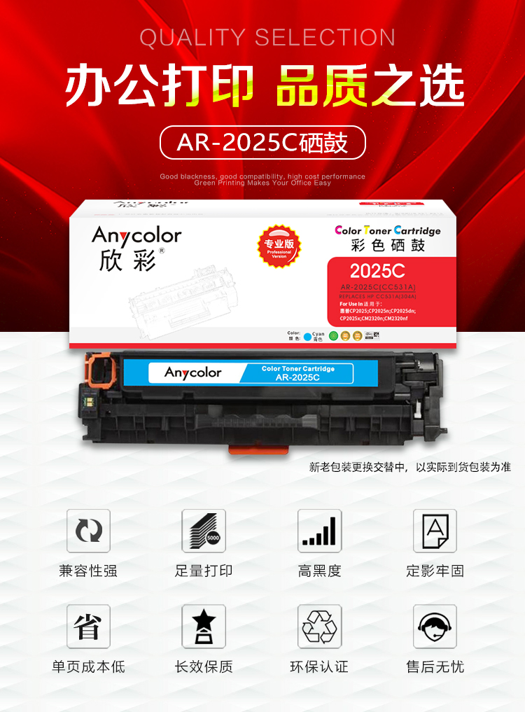 欣彩(Anycolor)AR-2025C(專業(yè)版)CC531A藍色硒鼓 304A 適用惠普HP Color LaserJet CP2025 2320
