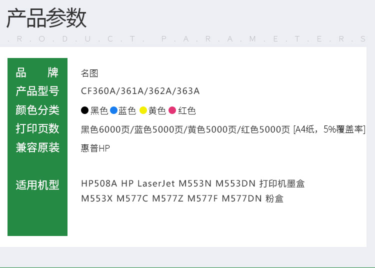 名圖 CF361A硒鼓 藍(lán)色 適用HP508A HP LaserJet M553N M553DN 打印機(jī)