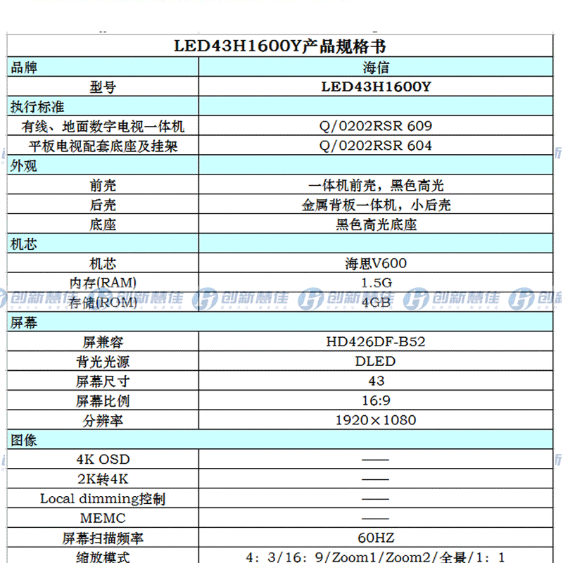 海信(Hisense) LED43H1600Y 43英寸 平板液晶電視 LED彩電WIFI(黑色)