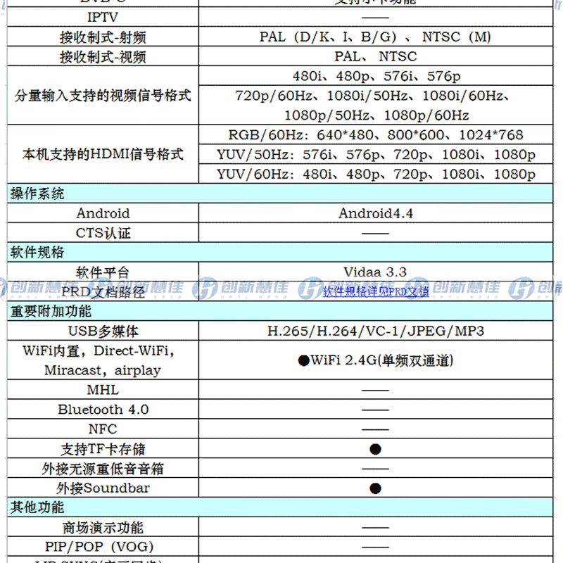 內(nèi)置無線 HDMI接口 USB接口 Android4.4系統(tǒng) 支持TF卡存儲 ?