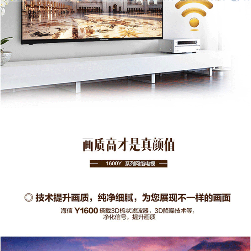 海信(Hisense) LED49H1600Y 49英寸 平板液晶電視 LED彩電WIFI(黑色)