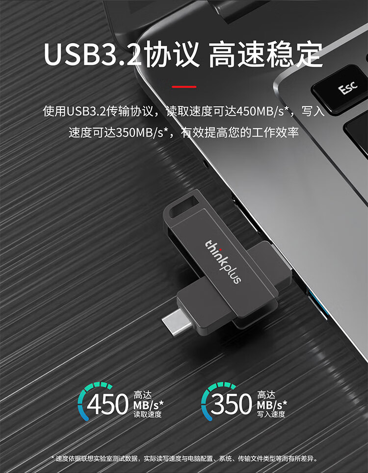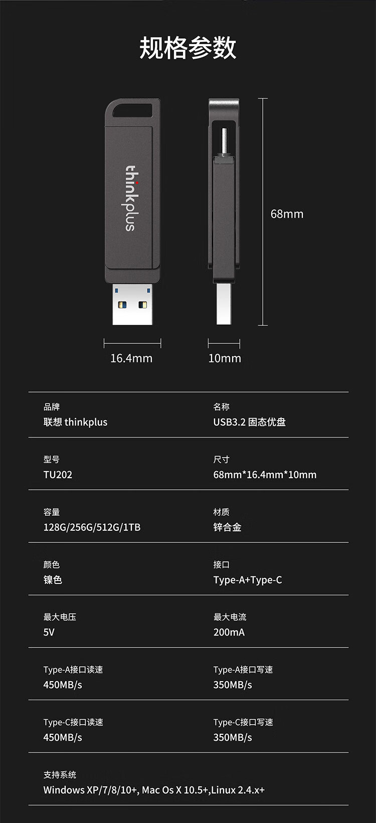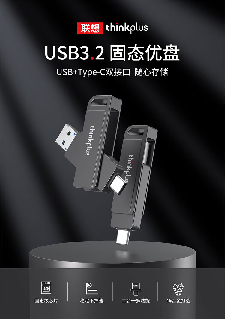 聯(lián)想 雙接口U盤USB3.2 Type-C高速傳輸U(kuò)盤TU202 128G