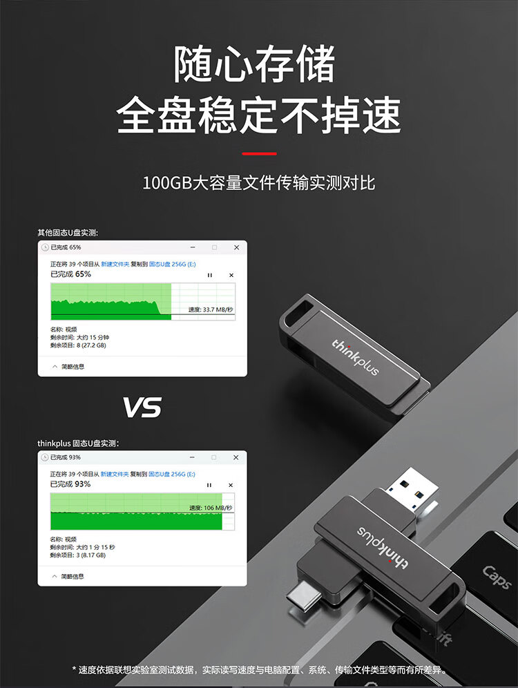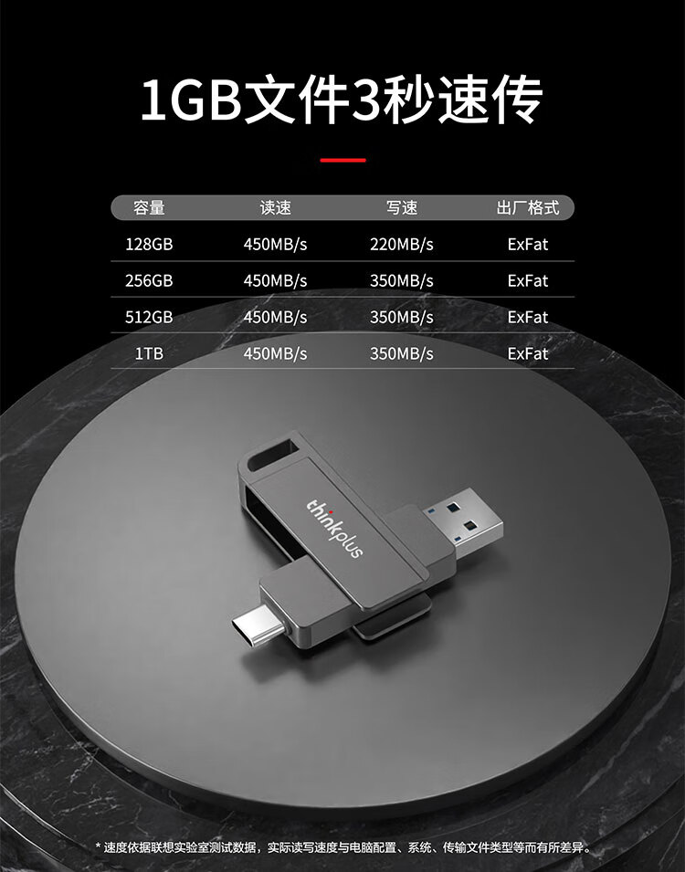 聯(lián)想(thinkplus)1TB USB3.1 U盤TU100灰色