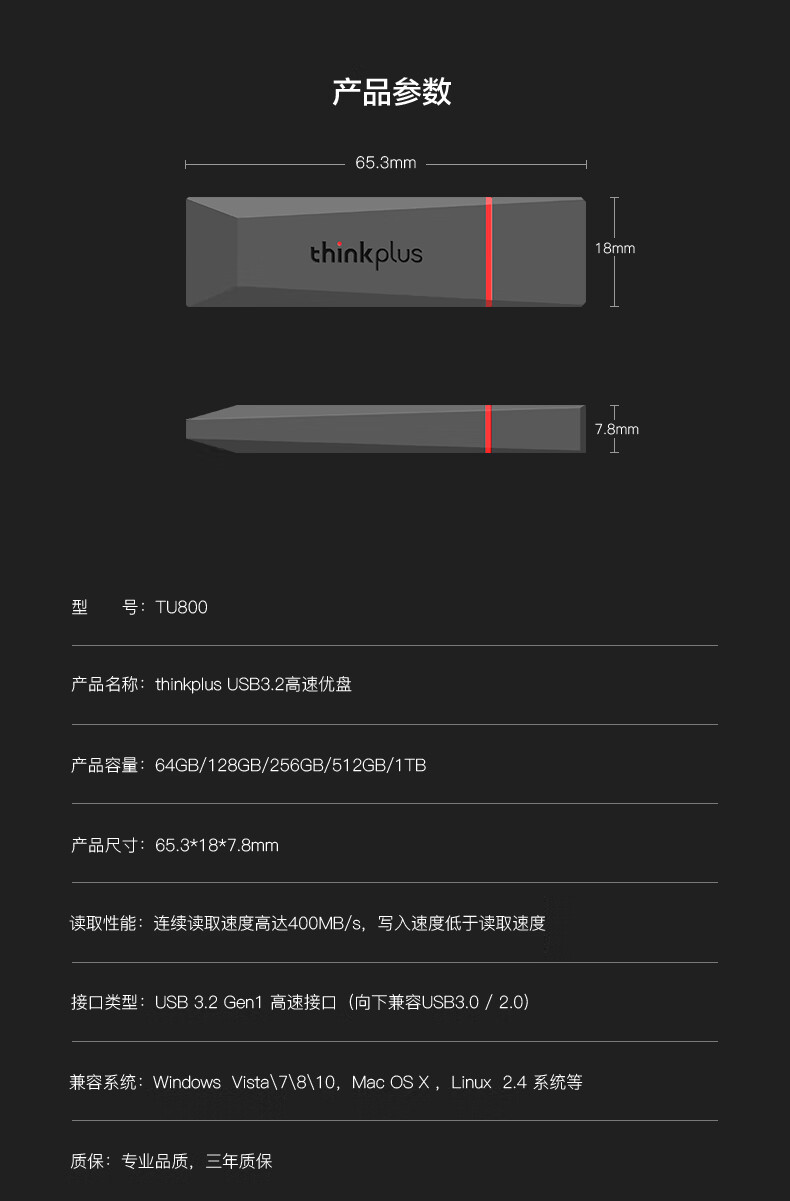 聯(lián)想 usb3.2大容量u盤【400MB/s讀寫速度】 TU800【128G】
