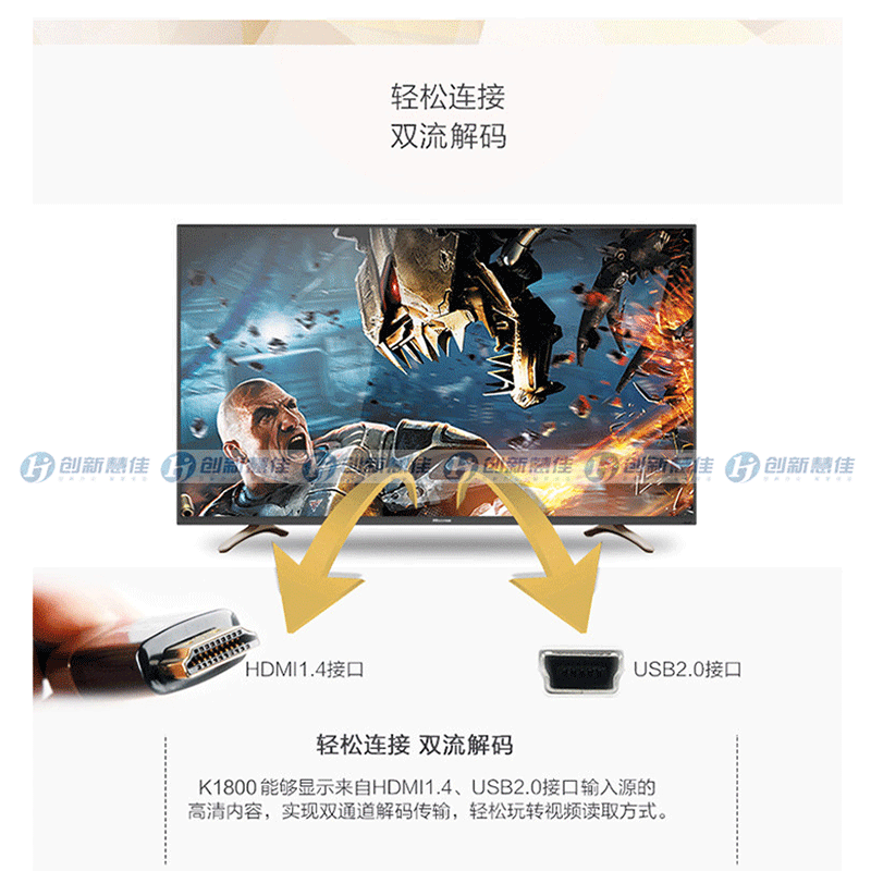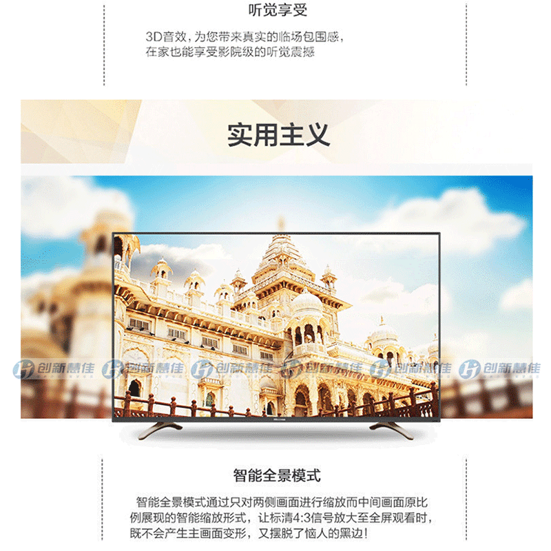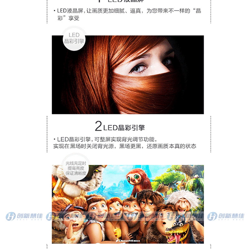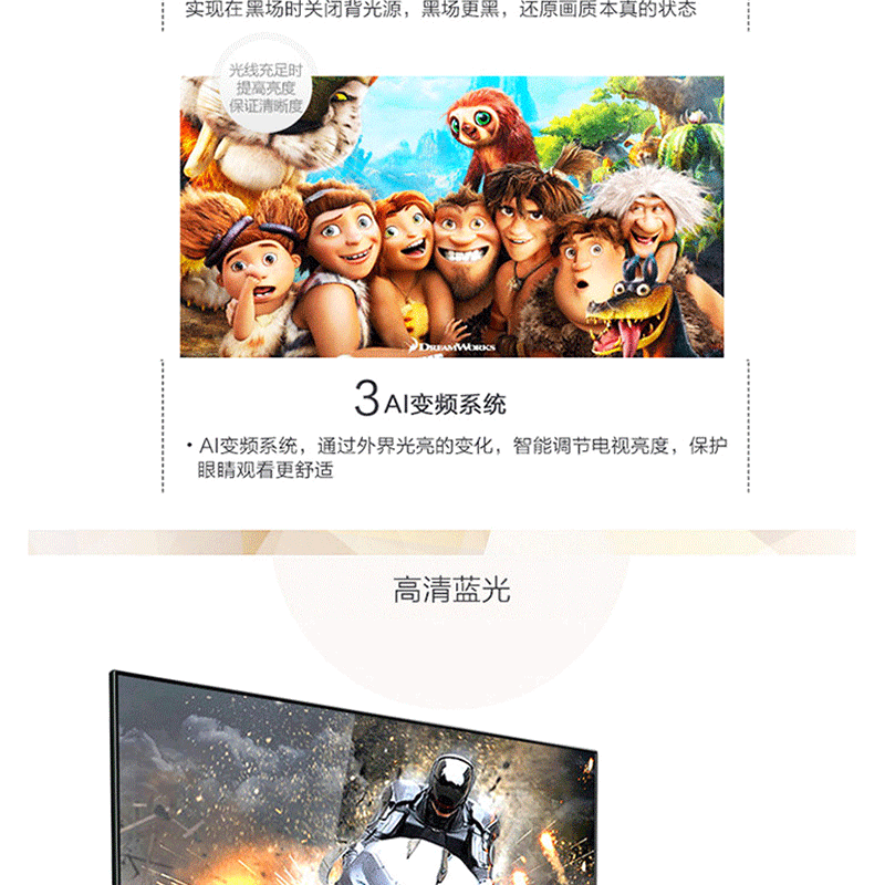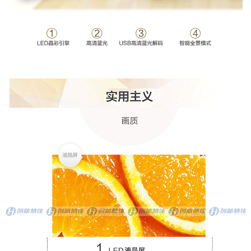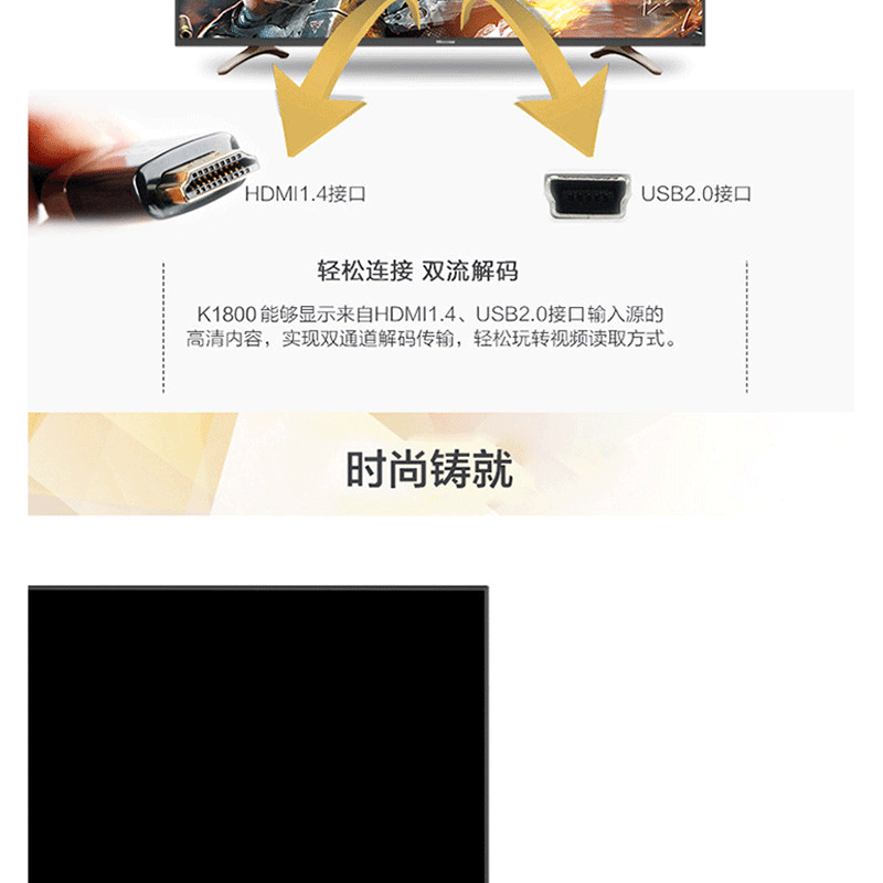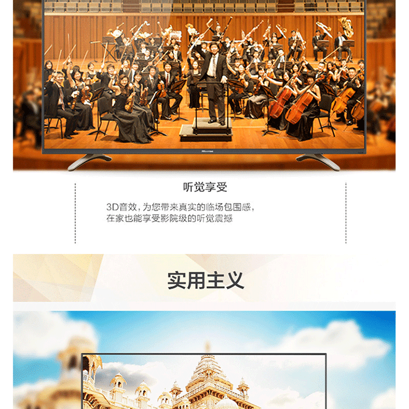全程高清解碼、藍(lán)光解碼,極窄邊框無限視界、黑色高光注塑工藝、 淺色香檳底座、一體化后殼設(shè)計(jì),立體變頻、圖像分析 ?