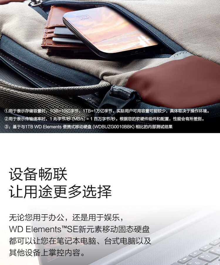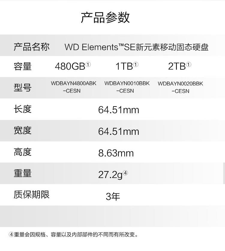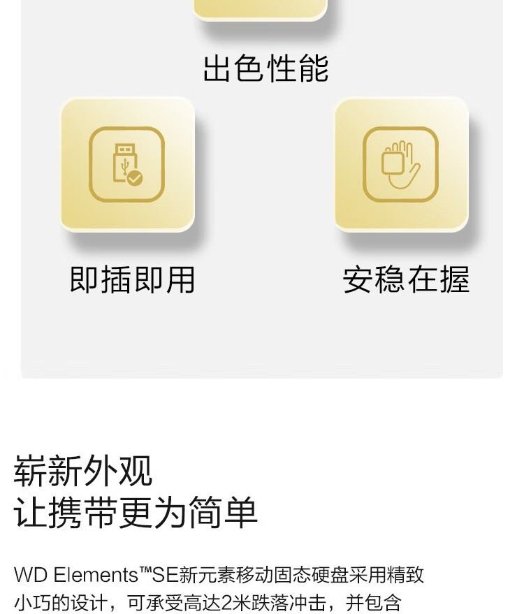 西部數(shù)據(jù)(WD)移動(dòng)硬盤(PSSD)Elements 2TB【云錦天章】USB3.0接口WDBAYN0020BBK-CESN