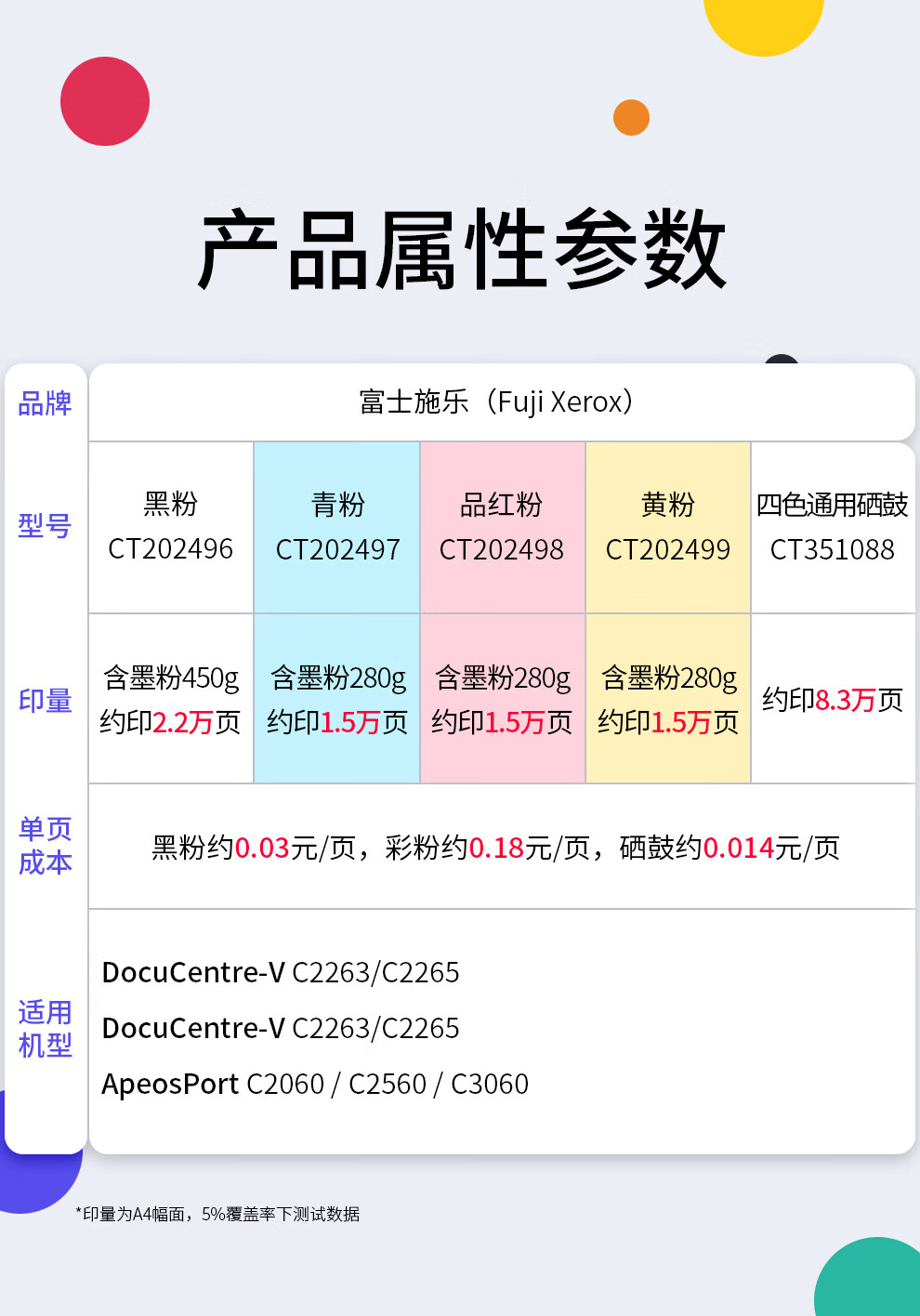 富士施樂(Fuji Xerox)VC2263/C2060/C3060/C2560五代VC2265原裝粉盒紅色墨粉CT202498可印16000張
