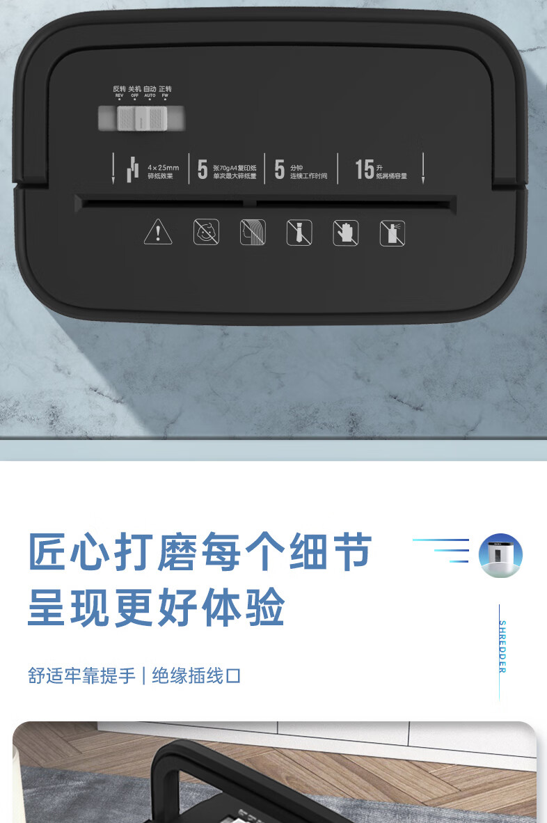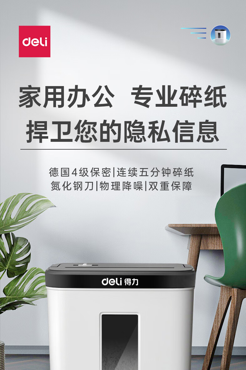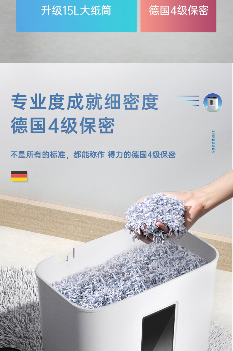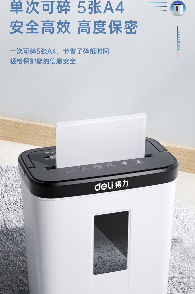 得力(deli)碎紙機(jī) 4級高保密(單次5張 15L 持續(xù)5分鐘 可碎卡)9939