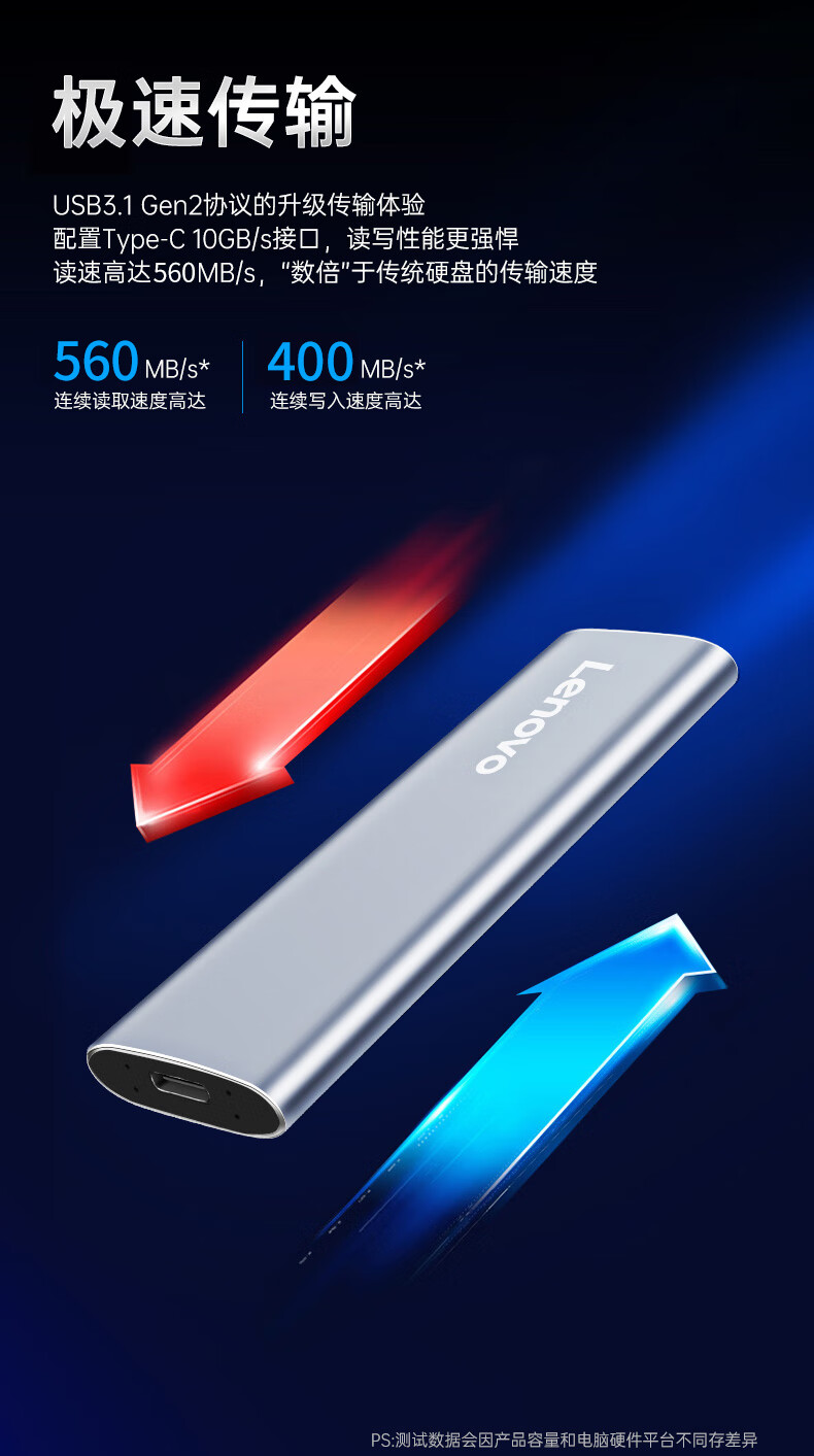 聯(lián)想(Lenovo)1TB 移動硬盤(PSSD)Type-c USB3.1接口 逐星系列 ZX1 銀色