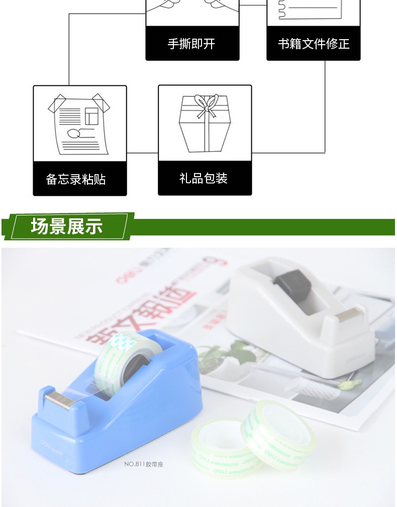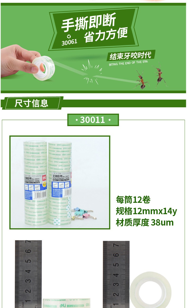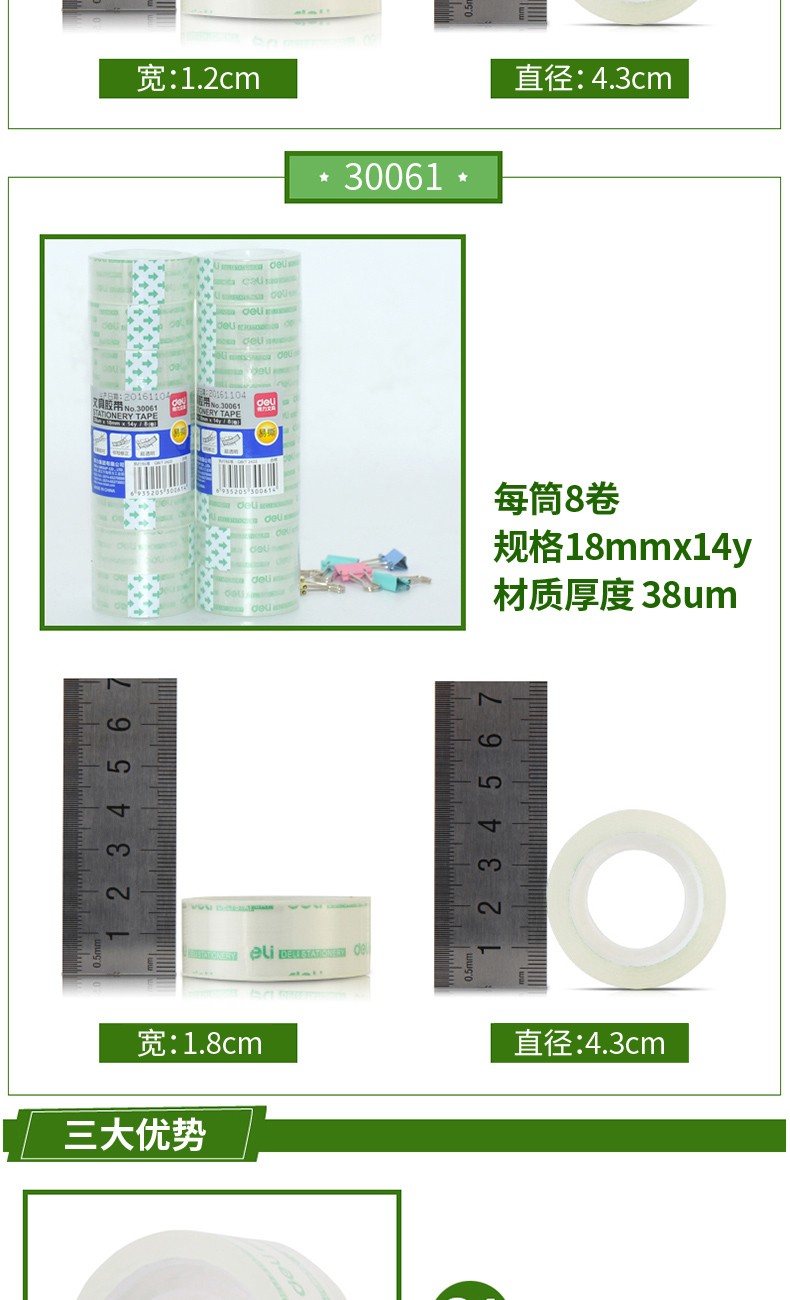 得力(deli)透明膠帶【3桶36卷】寬1.2cm*27.3米(送)膠帶座30015+811