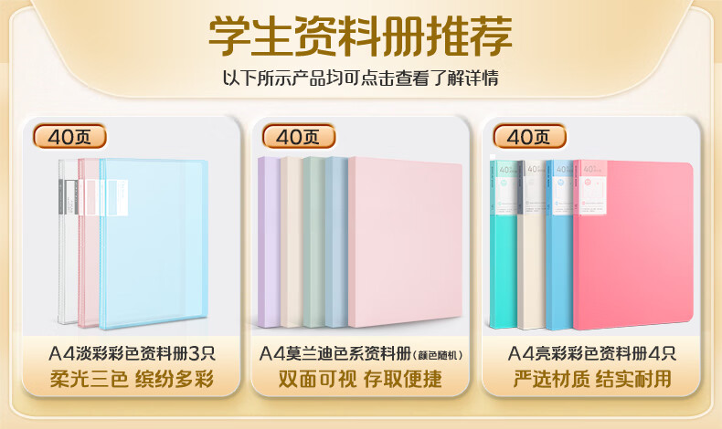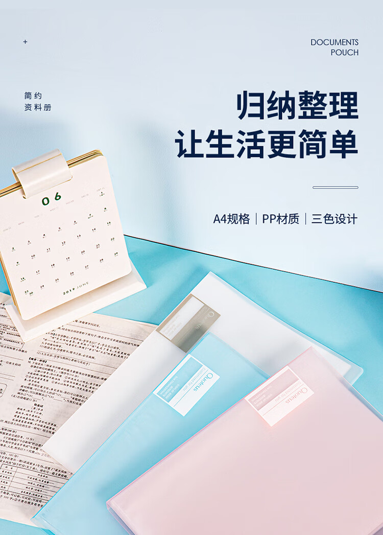 得力(deli)A4/40淡彩資料冊 活頁文件夾 資料試卷收納袋/冊 3只混裝 27152
