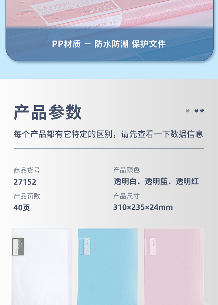 晨光(M&G)ADM95097 插袋檔案塑料文件冊多頁資料冊 40頁 藍色 單個裝