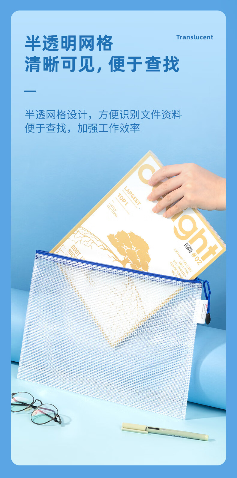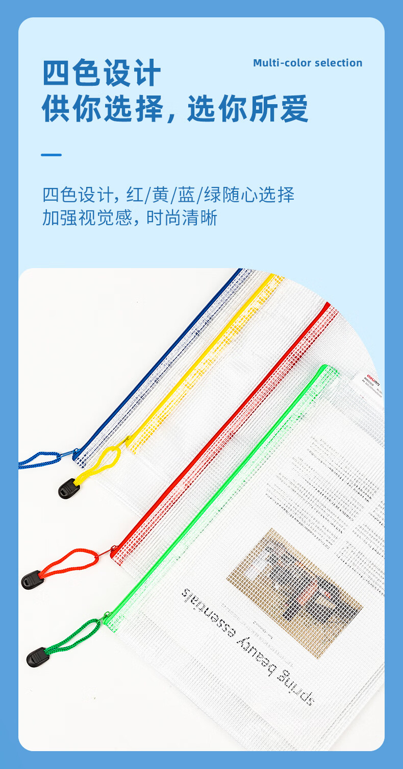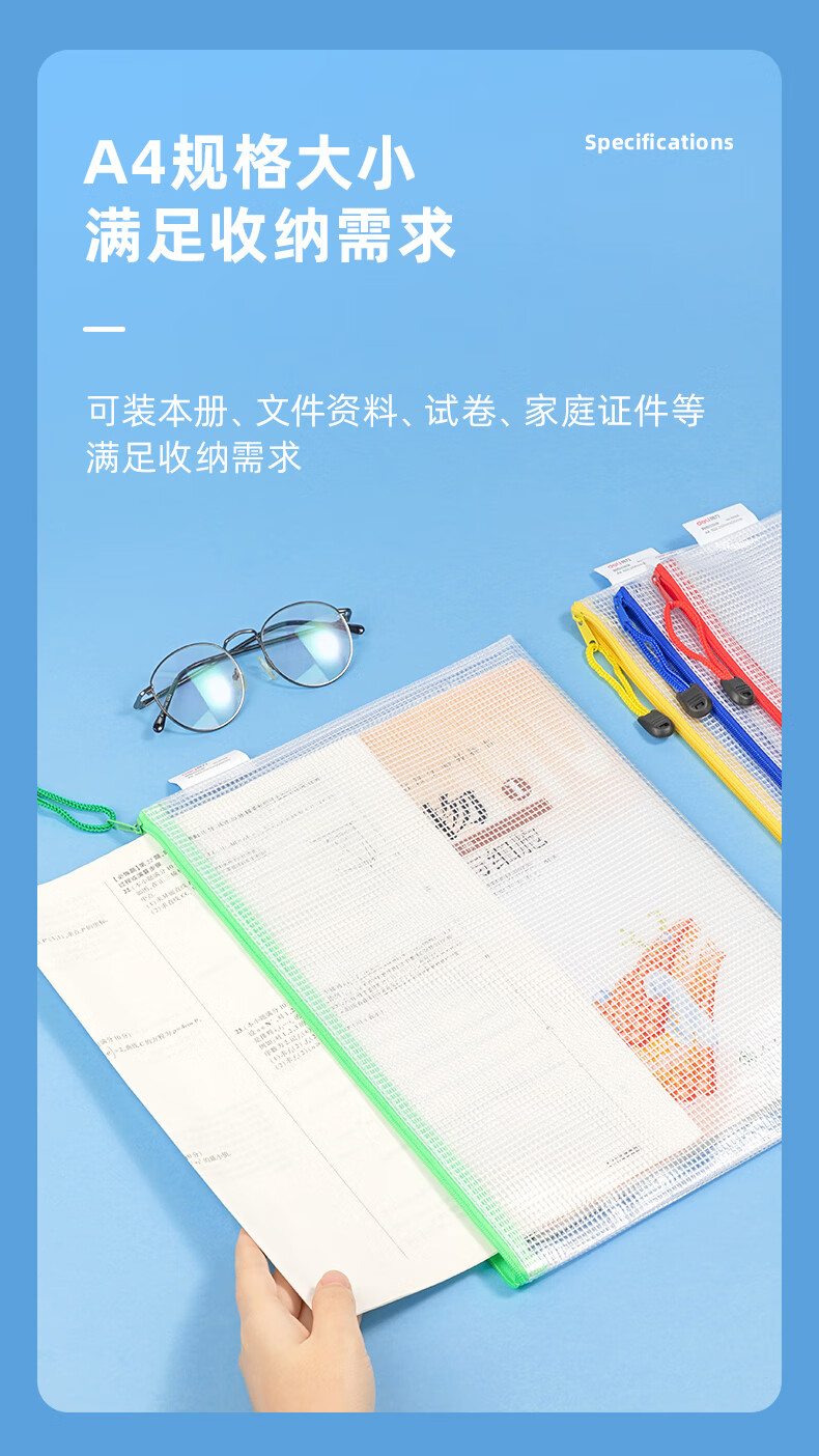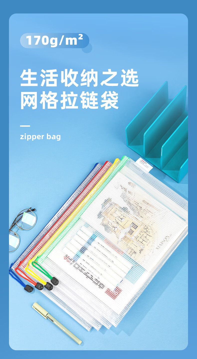 齊心(COMIX) A1154 A4 防潮網(wǎng)格拉鏈袋/文件袋/資料袋 顏色隨機(jī) 10個(gè)/包