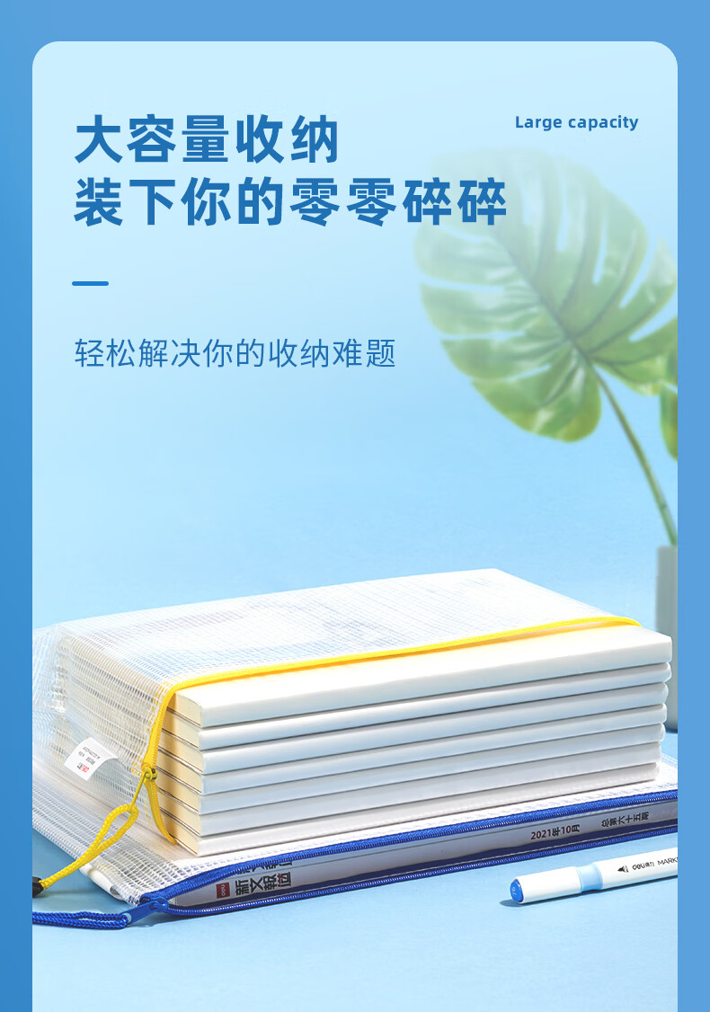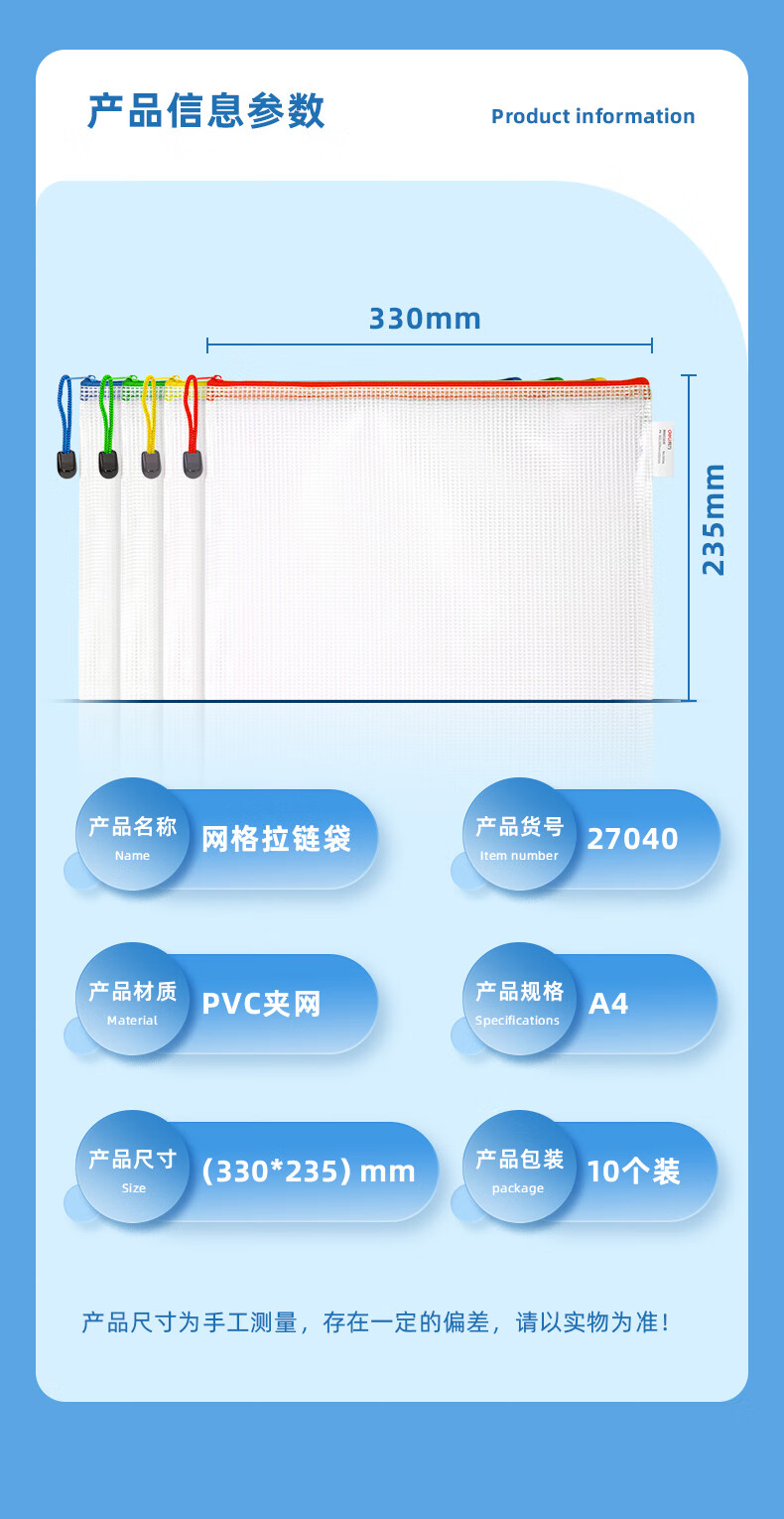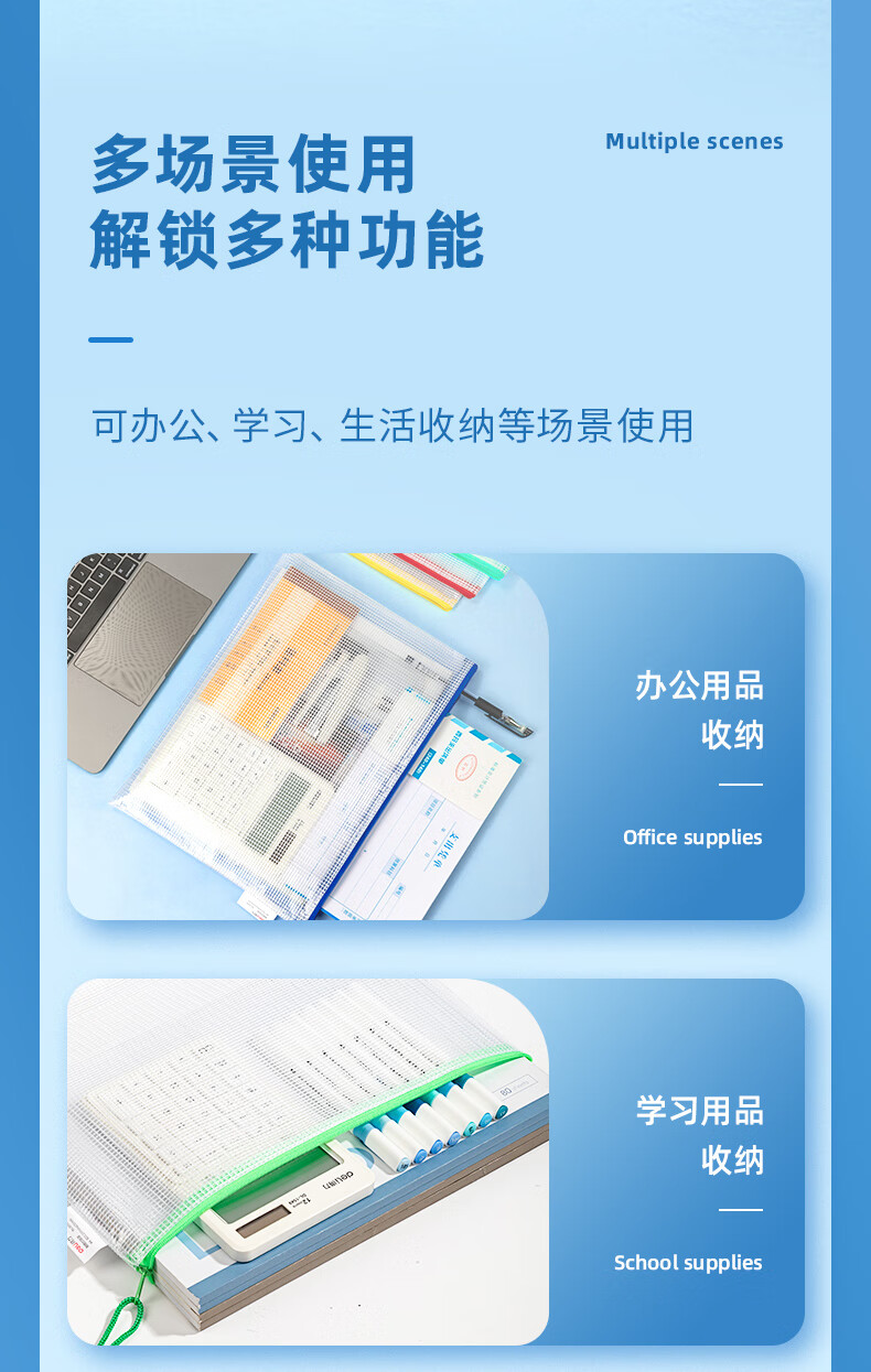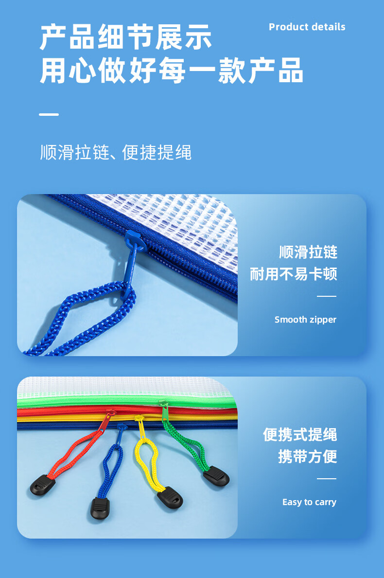 齊心(COMIX) A1154 A4 防潮網(wǎng)格拉鏈袋/文件袋/資料袋 顏色隨機(jī) 10個(gè)/包