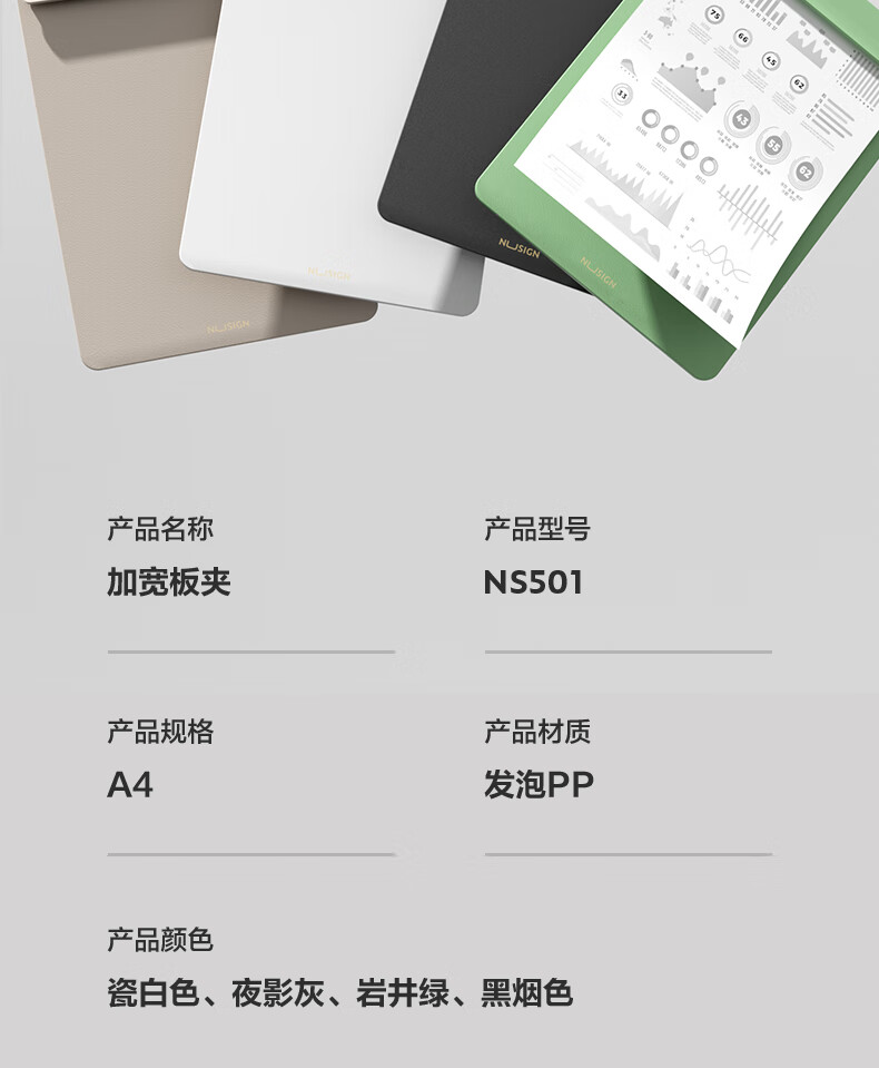 得力(deli)A4 PP板夾 加寬資料夾 巖井綠 NS501