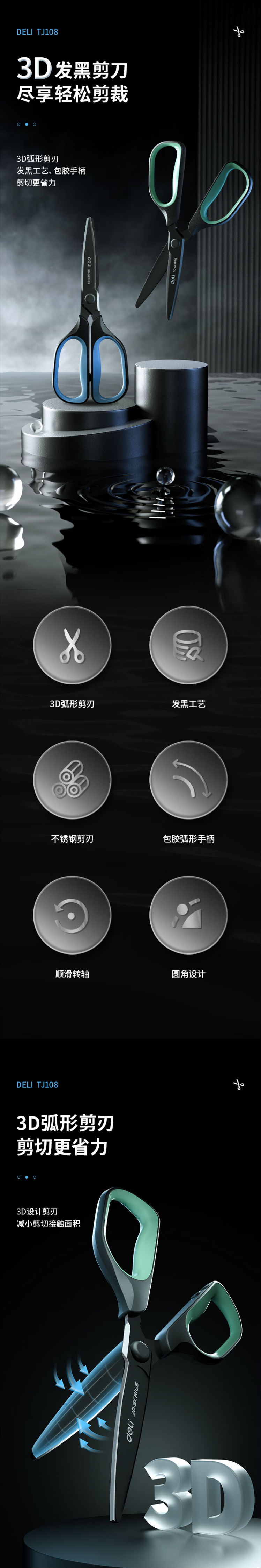 得力(deli)175mm省力鍍黑刀刃防銹耐磨 辦公用品 TJ108