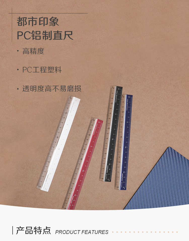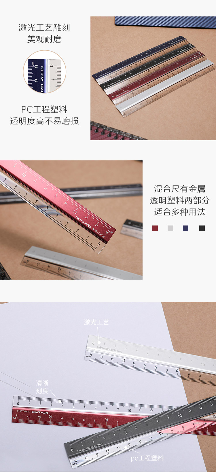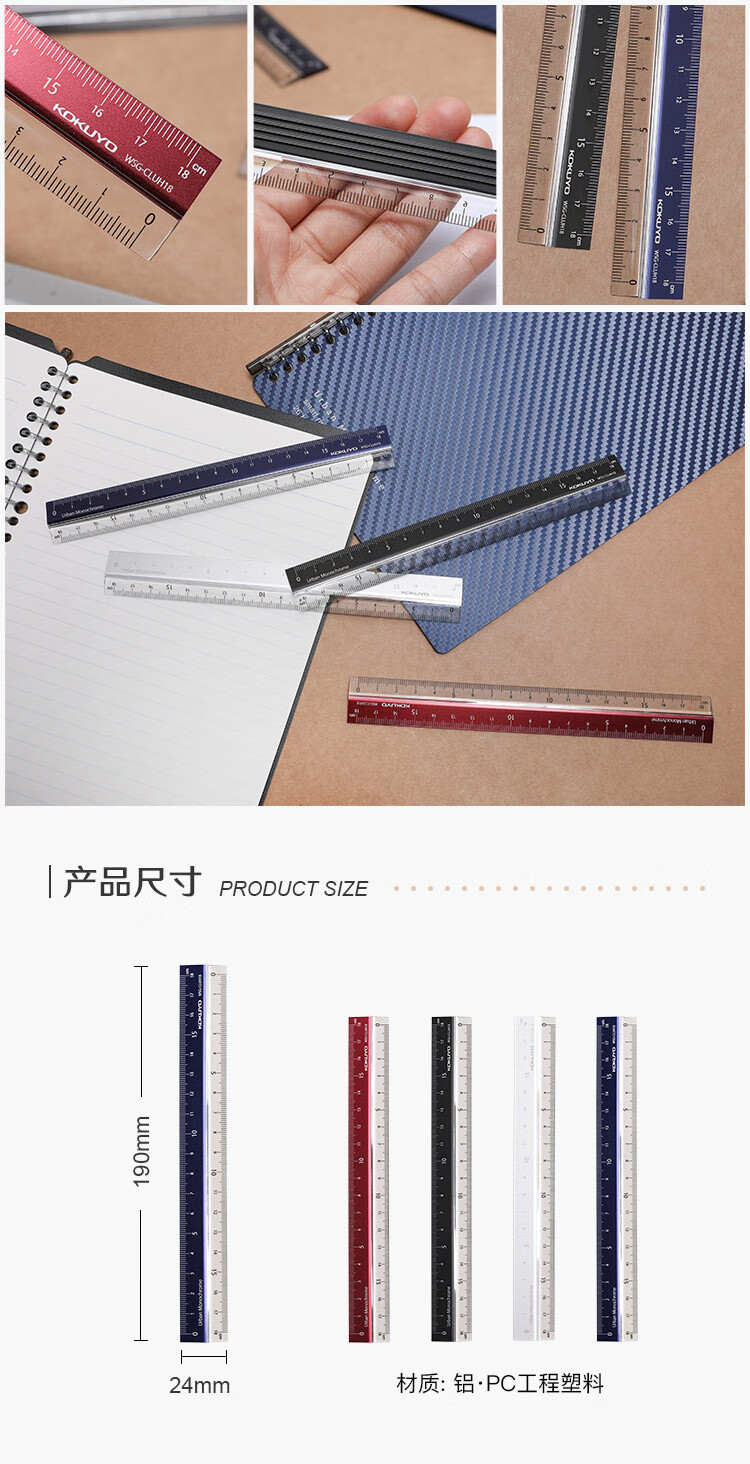 國譽(KOKUYO)都市印象學(xué)生高考PC鋁制直尺(18cm)190×24×3.5mm黑色 1個裝 WSG-CLUH18D