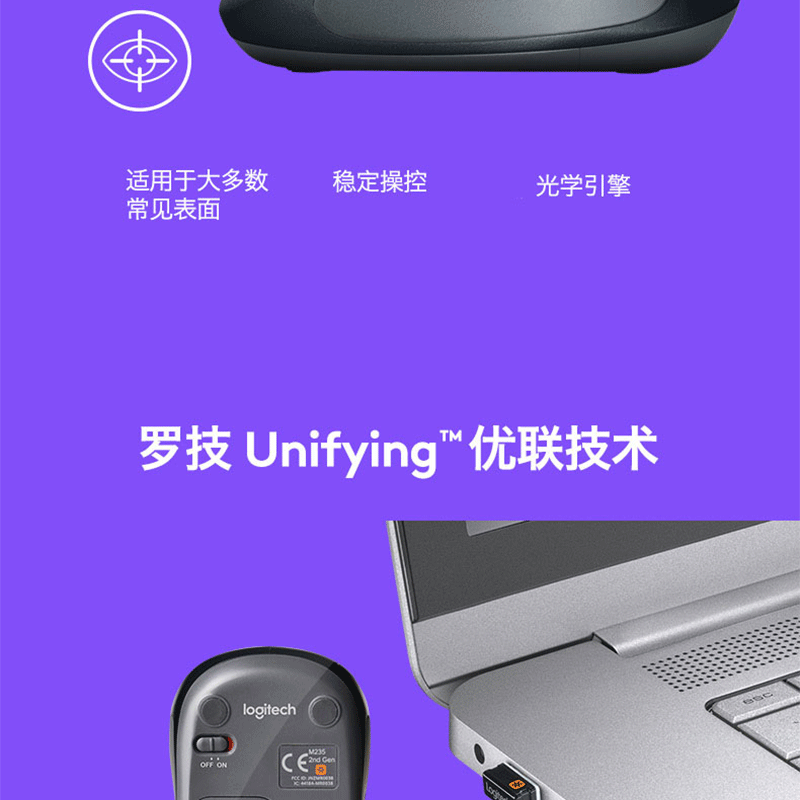 羅技(Logitech) M235 無線2代光電鼠標 灰色
