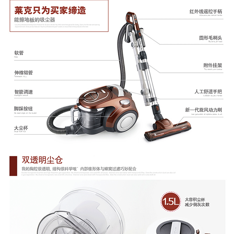 萊克(LEXY) VC-T4026-3 家用強(qiáng)力無(wú)耗材除螨吸塵器
