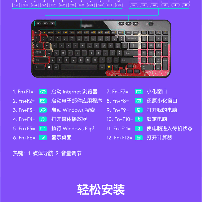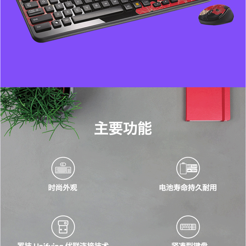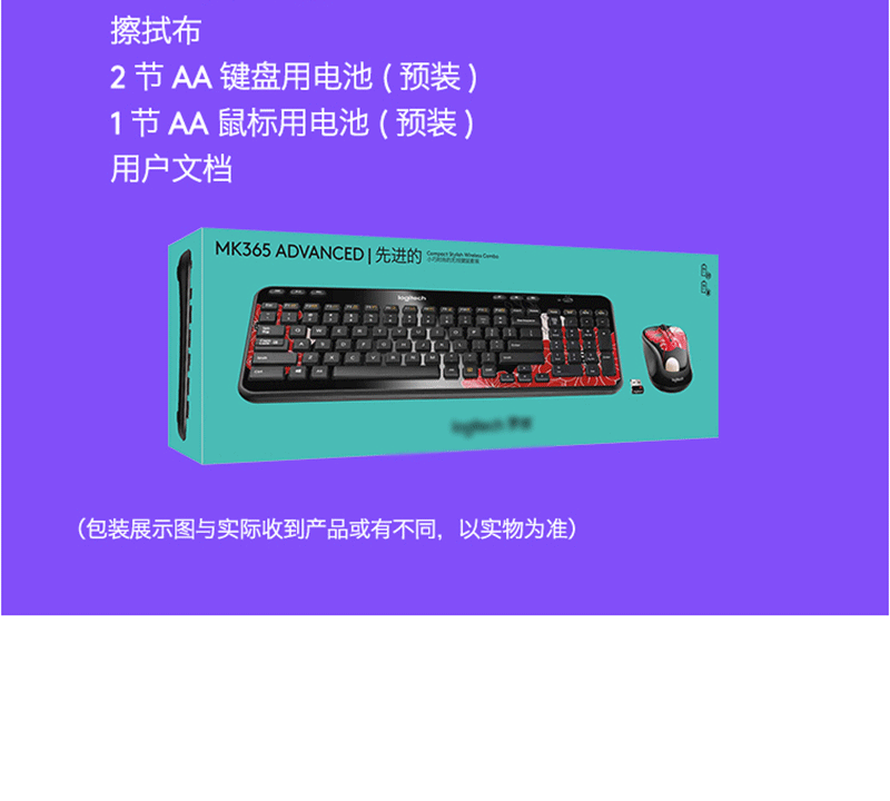 羅技(Logitech) MK365 無線鍵鼠套裝 巧克力鍵盤(黑色)
