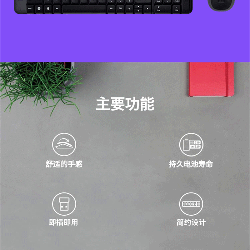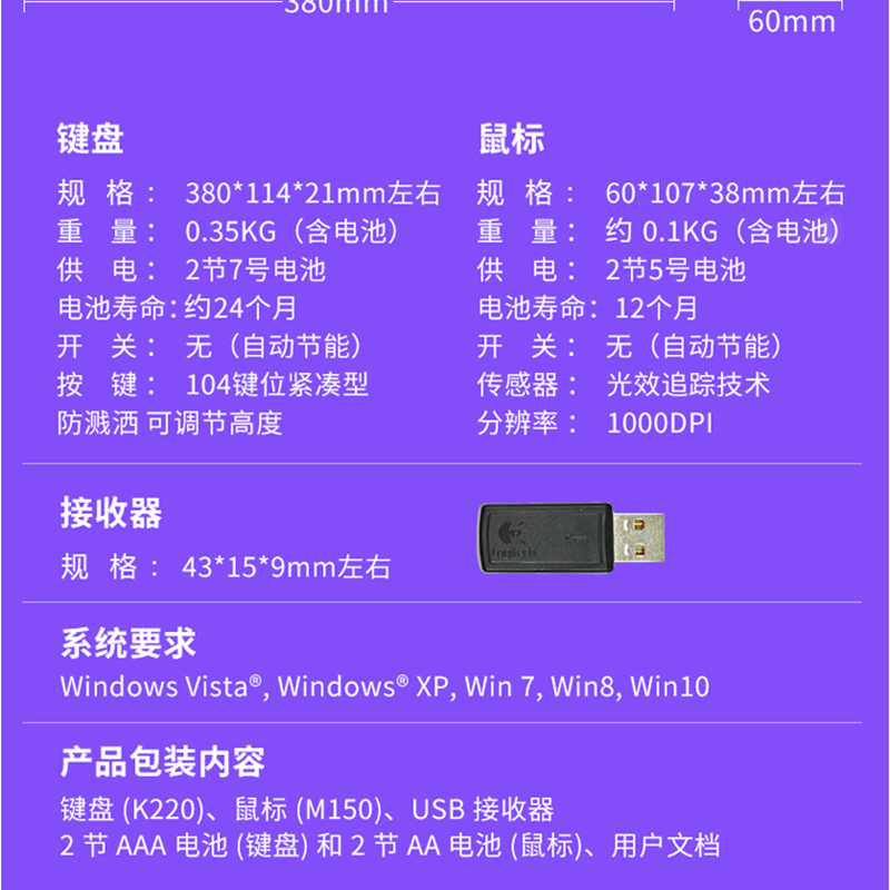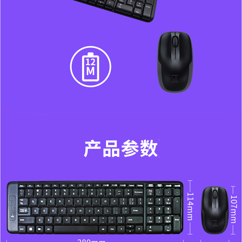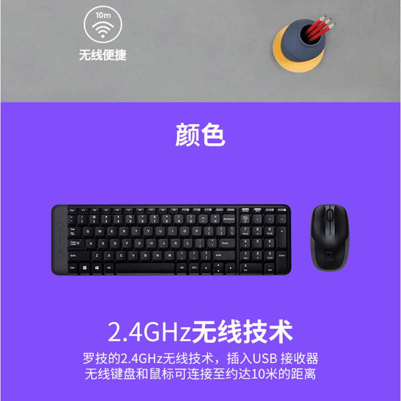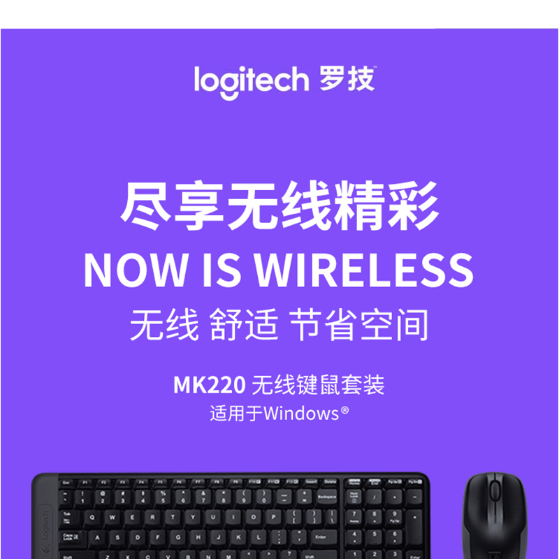 羅技(Logitech) MK220 無線鍵盤鼠標(biāo)套裝(黑色)