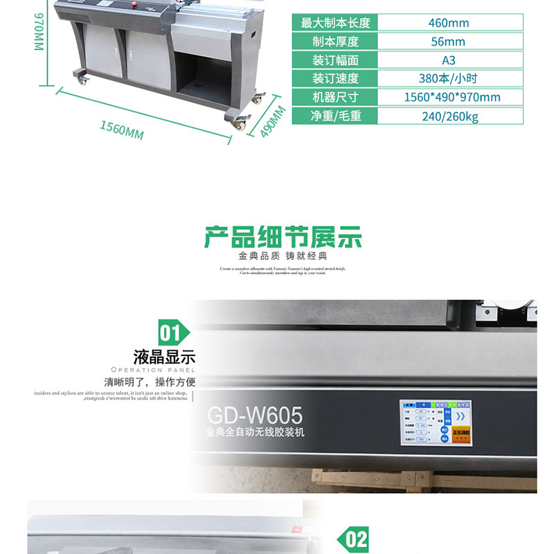 金典(Golden) GD-W605 全自動(dòng)無(wú)線膠裝機(jī)/A3熱熔標(biāo)書(shū)裝訂機(jī)