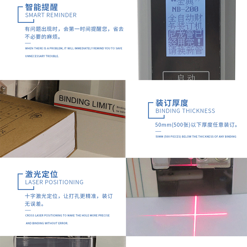 一鍵激光定位,耗材提示,500頁(yè)裝訂厚度 ?