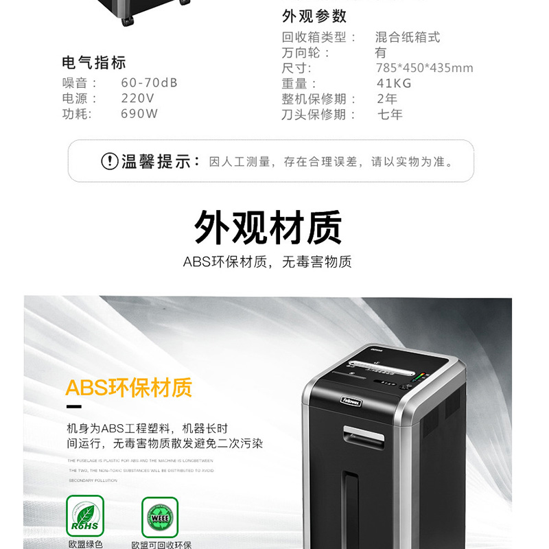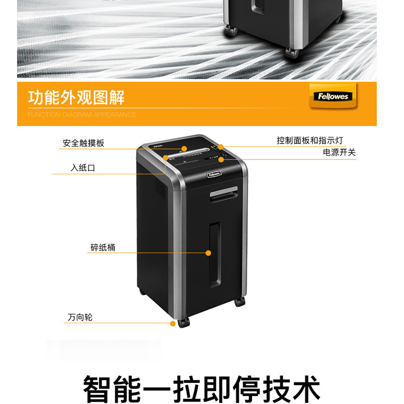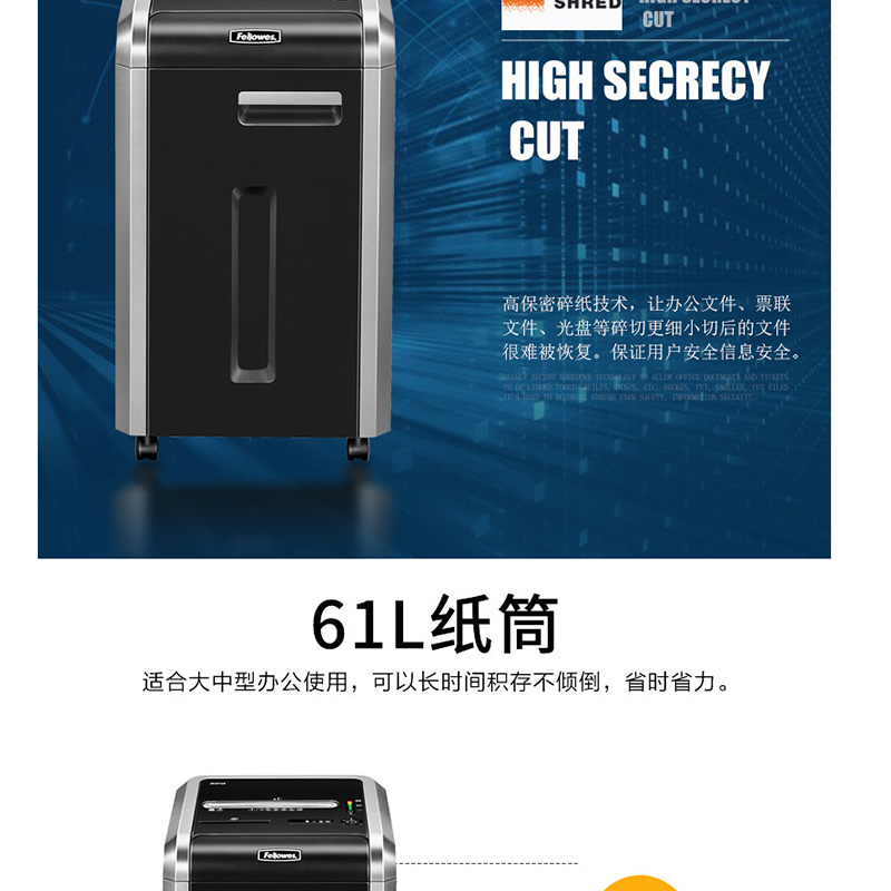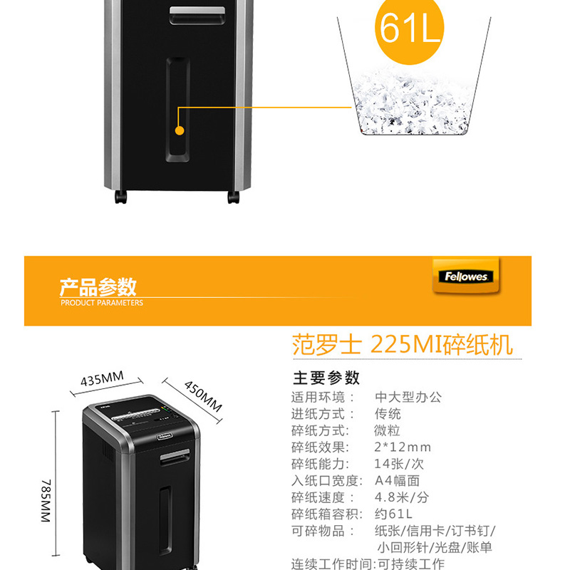 范羅士(Fellowes) 225Mi 大型商用辦公碎紙機(jī)(61L大容量/單次碎紙14張)