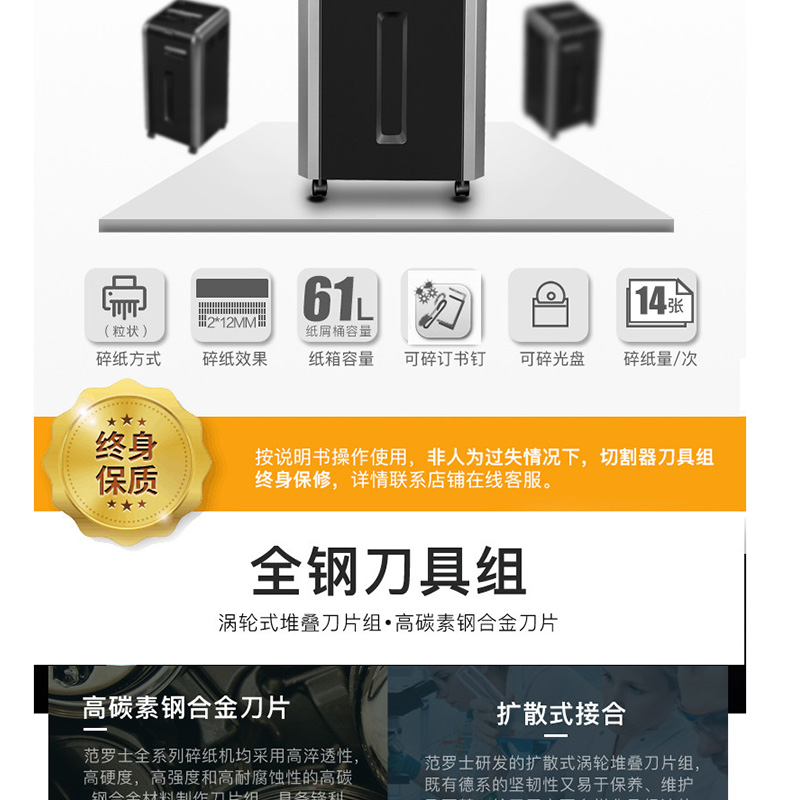 全鋼刀具組持久耐用!碎紙快/可持續(xù)工作/防卡紙/ 大中型辦公理想型! ?