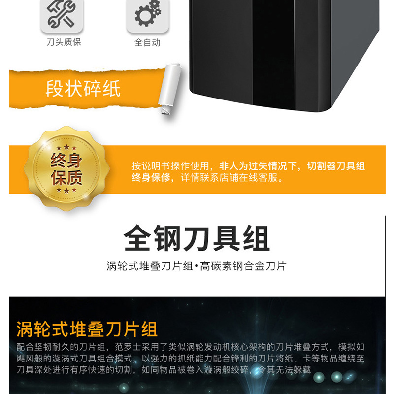 百年美國(guó)品牌,全鋼刀具組持久耐用!解放雙手,不用拆釘。 60.5L大容量碎紙實(shí)力派! ?