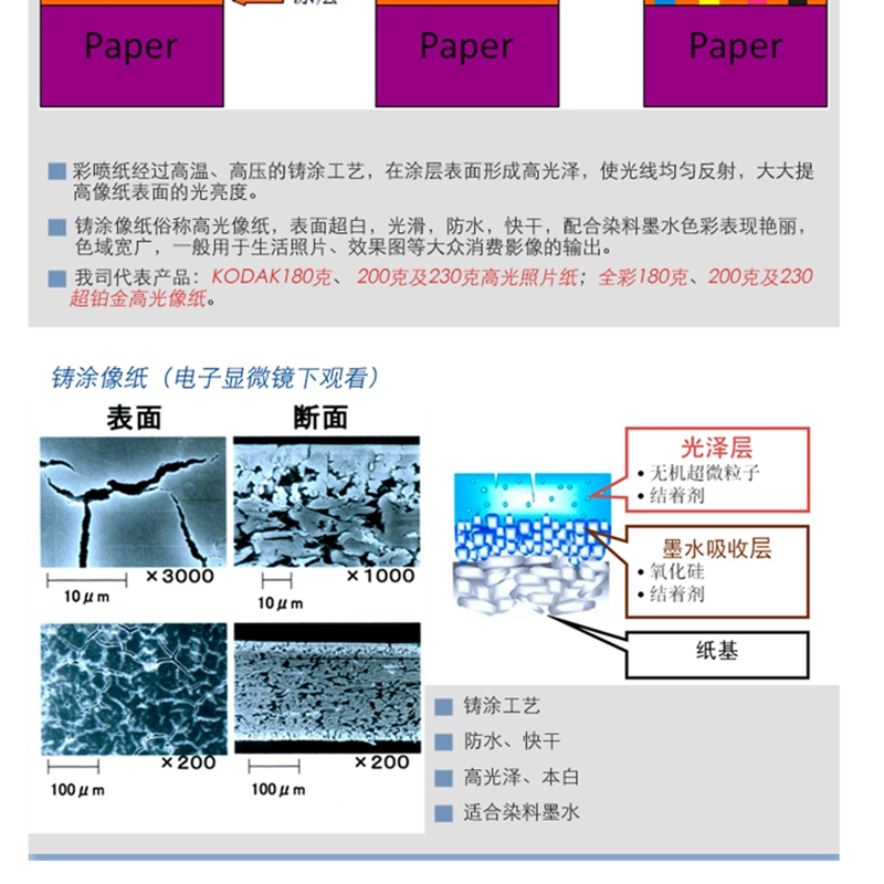 速干,防水 ,長久保存,適用各種噴墨打印機(jī)使用 ?