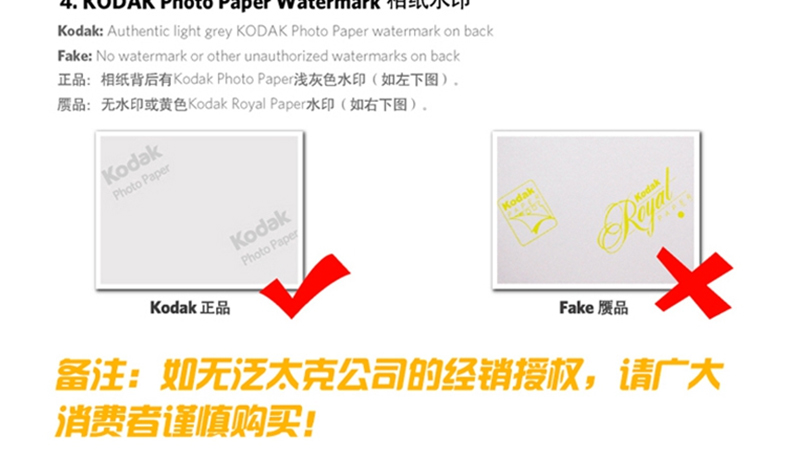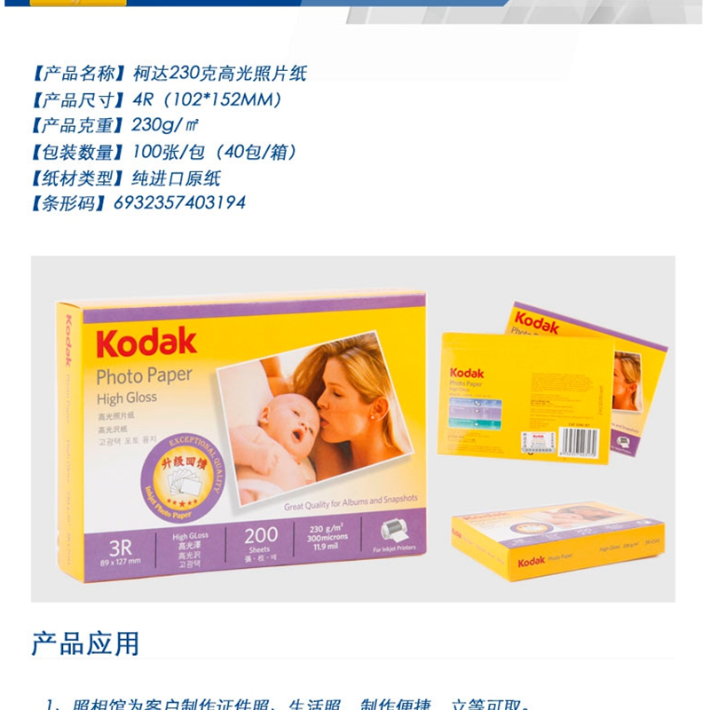 柯達(dá)(Kodak) 4R 高光相紙 6寸/230g 100張裝