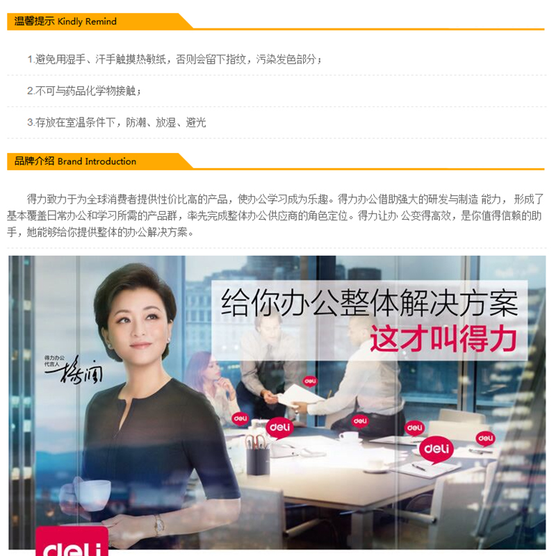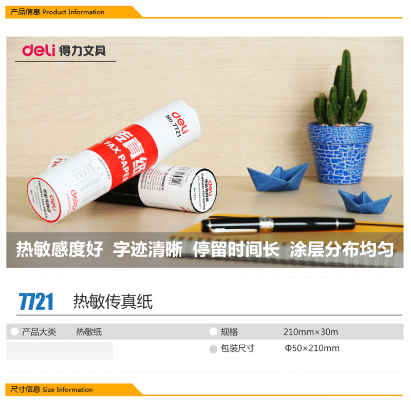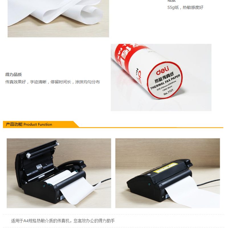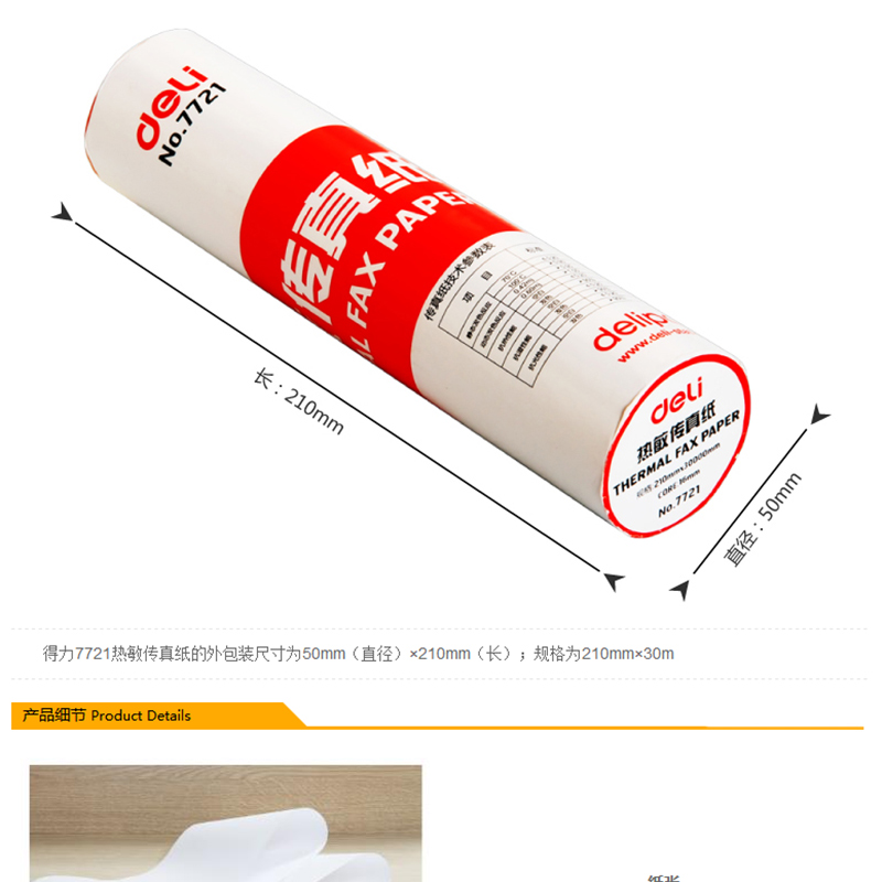 得力(deli) 7721 熱敏傳真紙(白)210mm*29m(卷)12卷裝