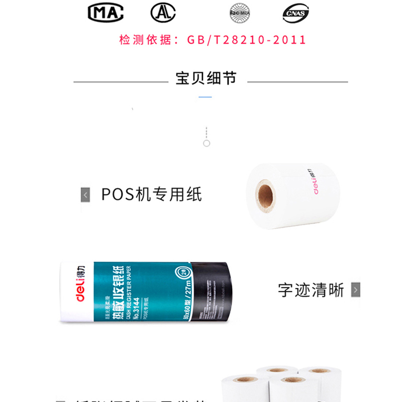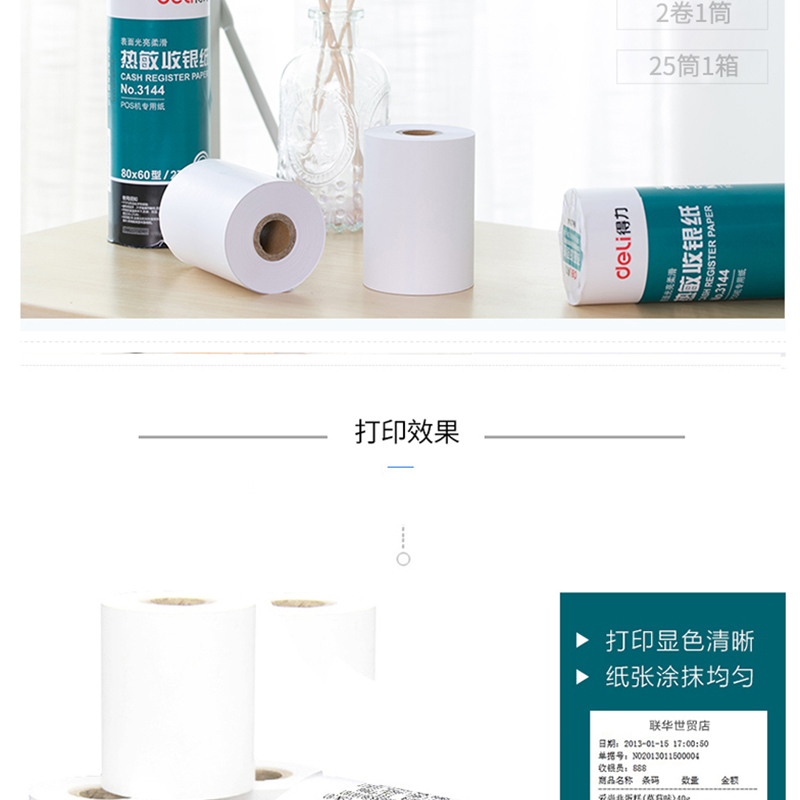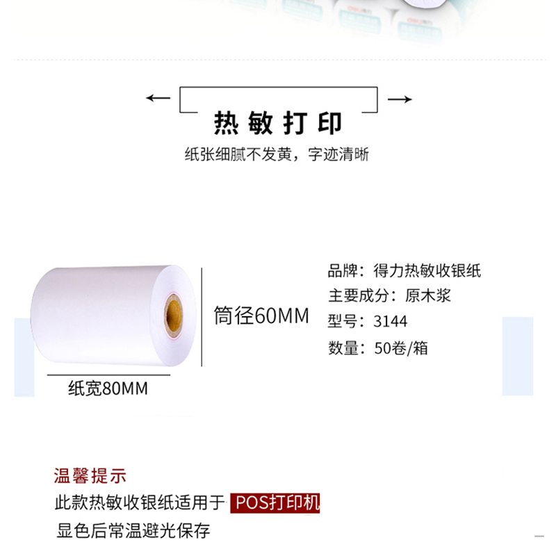 得力(deli) 3144 熱敏收銀紙80mm*60mm*27m(紅)25卷裝