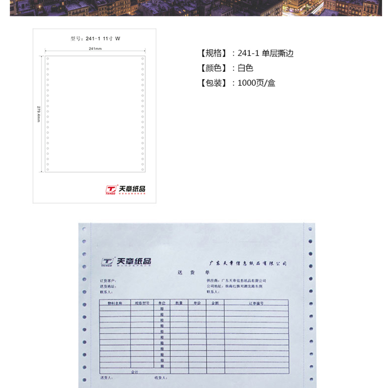 綠天章 241-1 電腦打印紙 一聯(lián)整張撕邊電腦打印紙 (色序:白 1200份/箱)