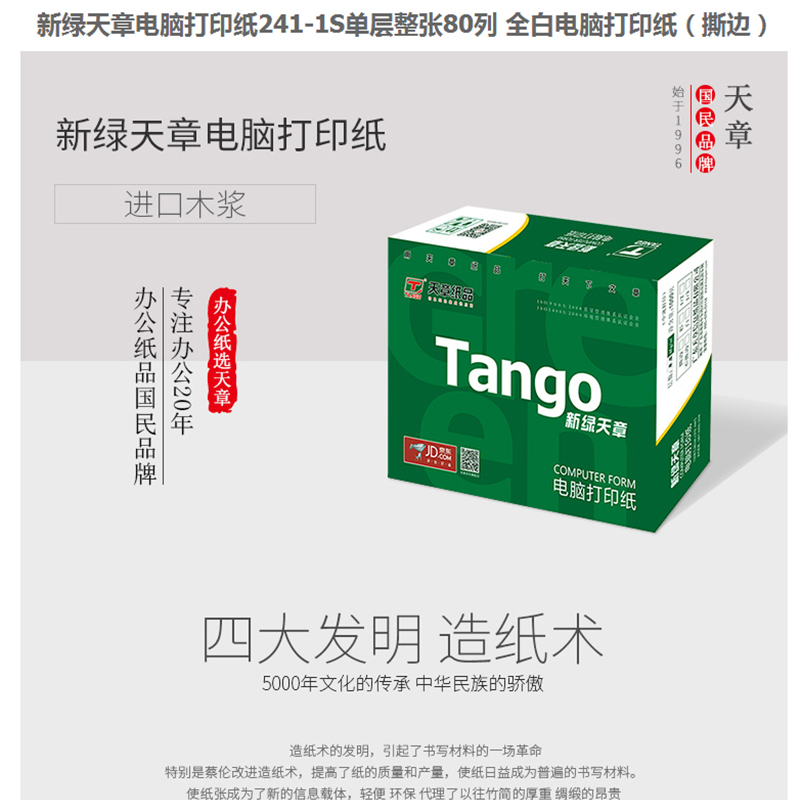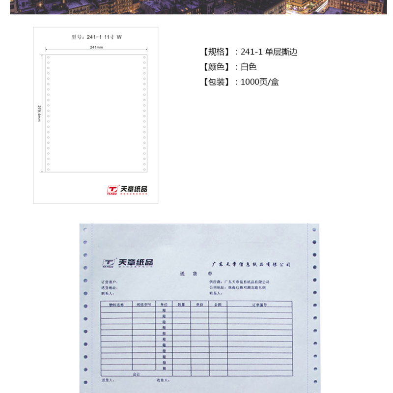 綠天章 241 -1 電腦打印紙一聯(lián)二等分撕邊電腦打印紙 (色序:白 1200份/箱)