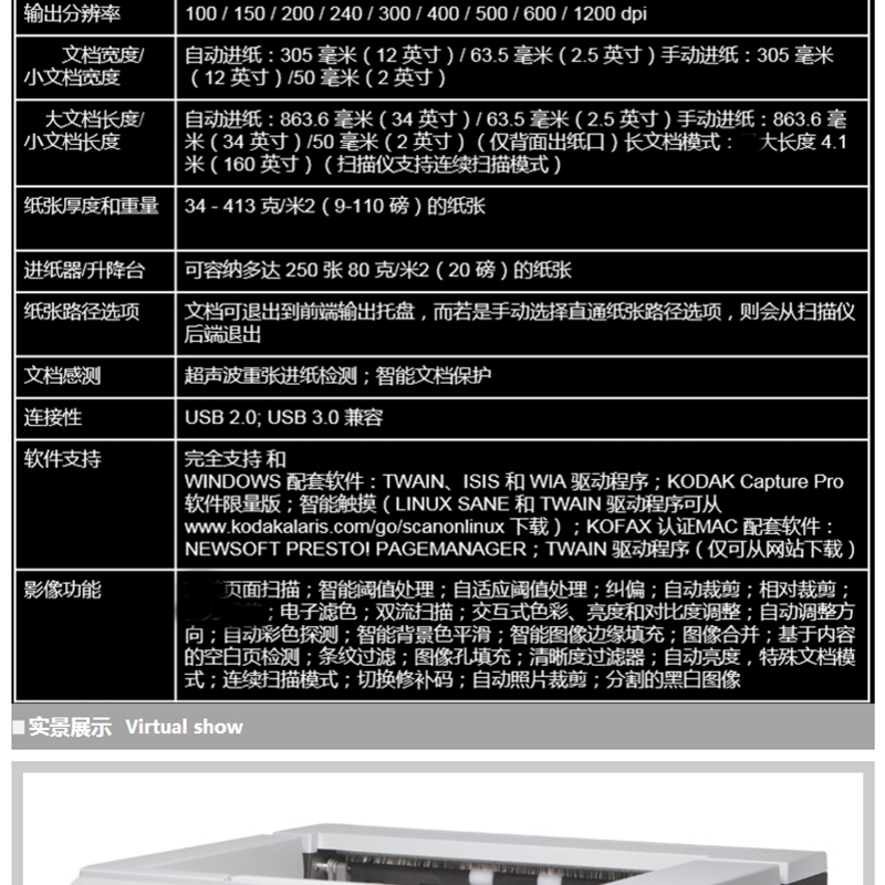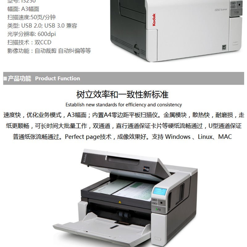 柯達(dá)(Kodak) i3250 A3饋紙式掃描儀 雙面自動(dòng)進(jìn)紙
