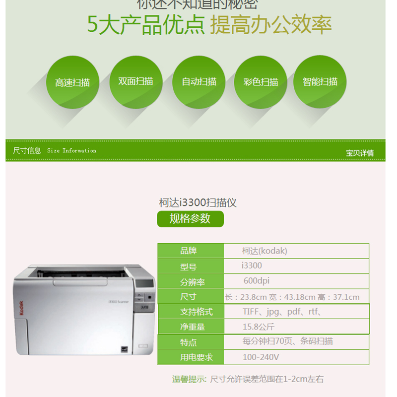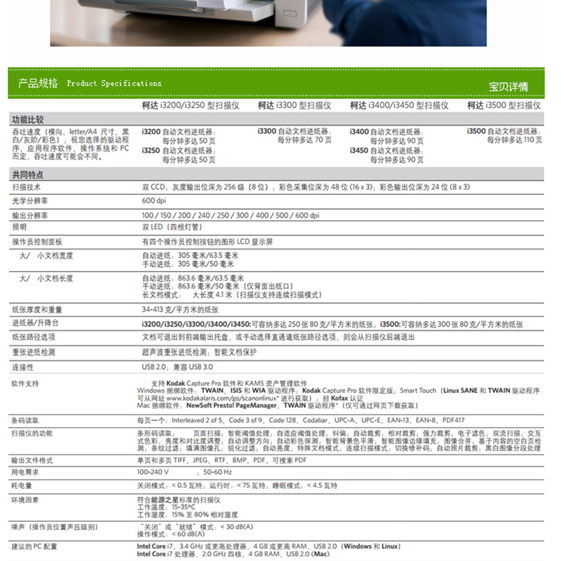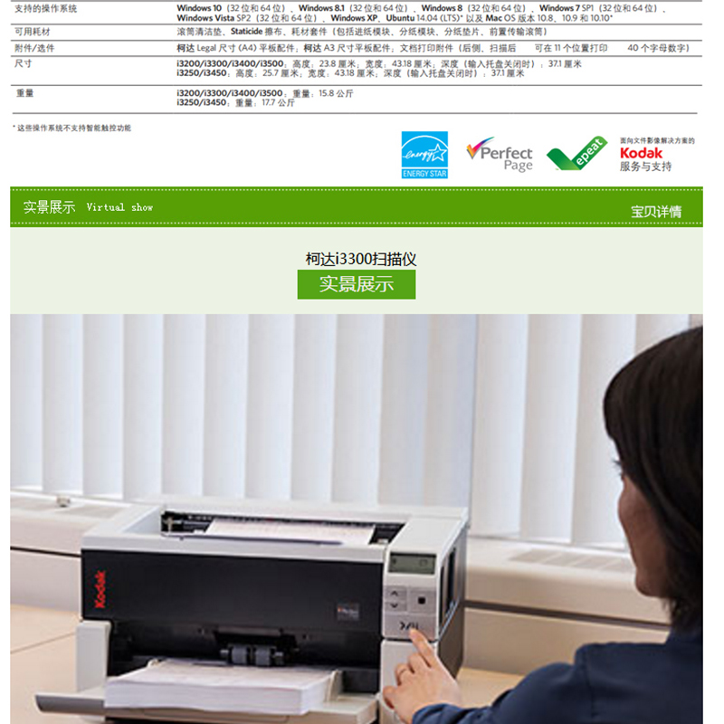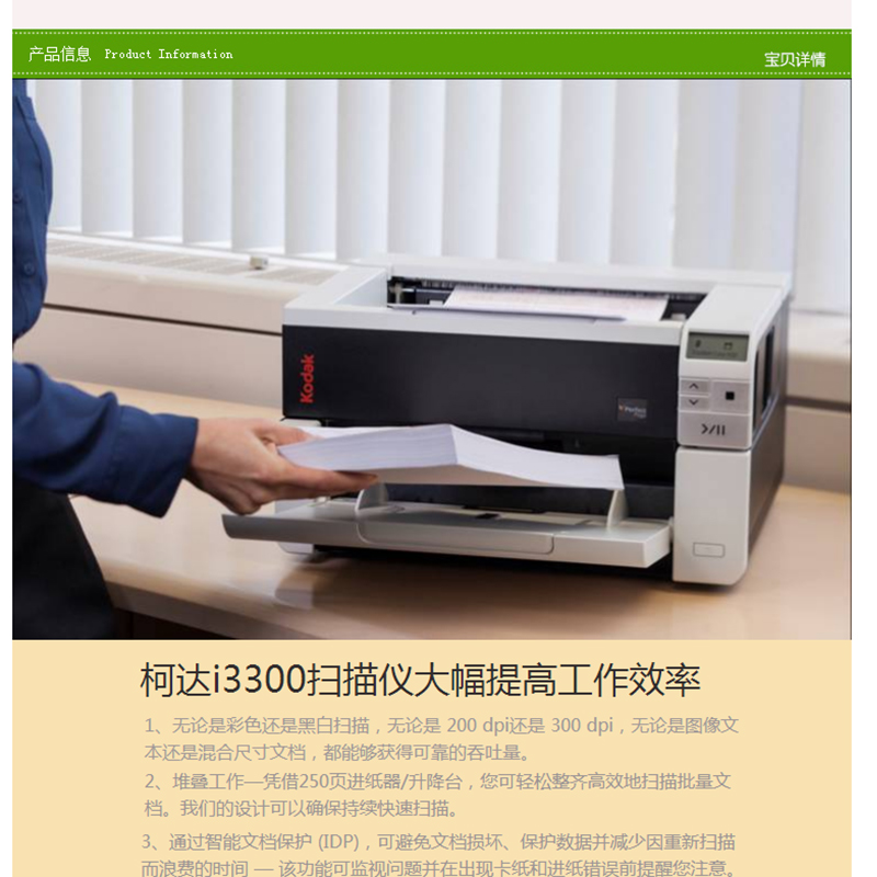 柯達(dá)(Kodak) i3300 A3饋紙式掃描儀 高速雙面自動(dòng)進(jìn)紙