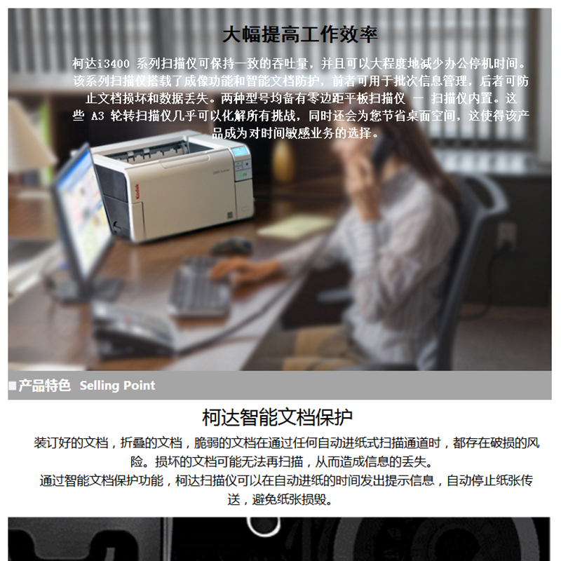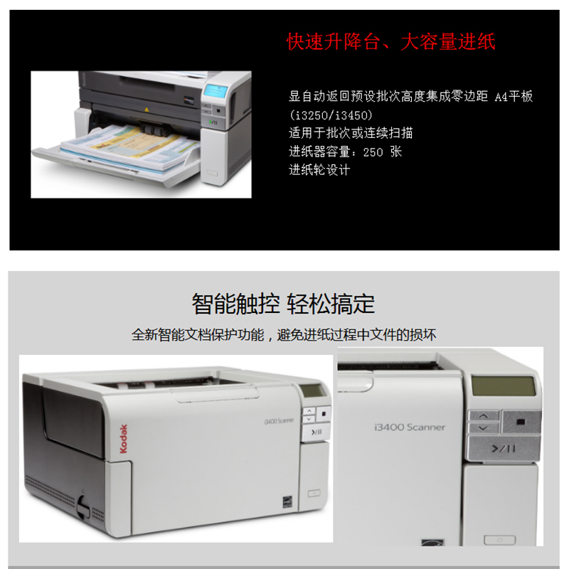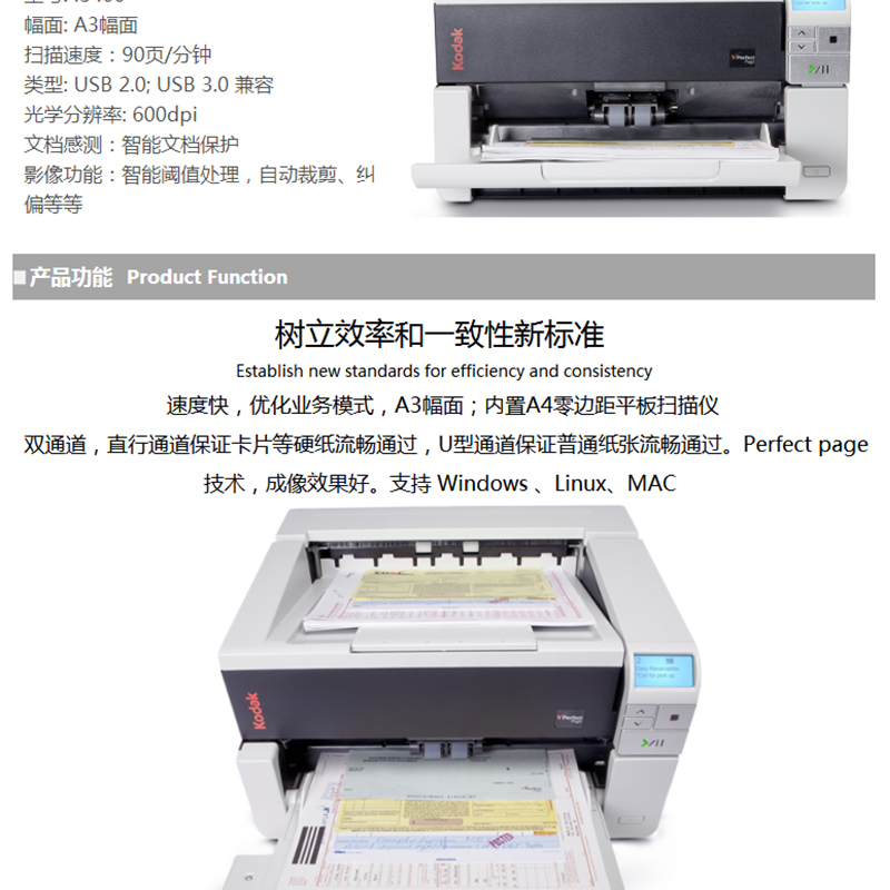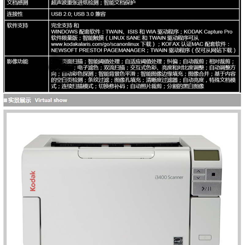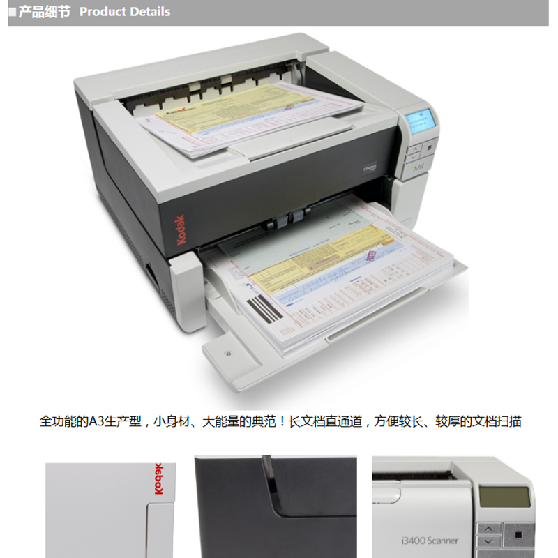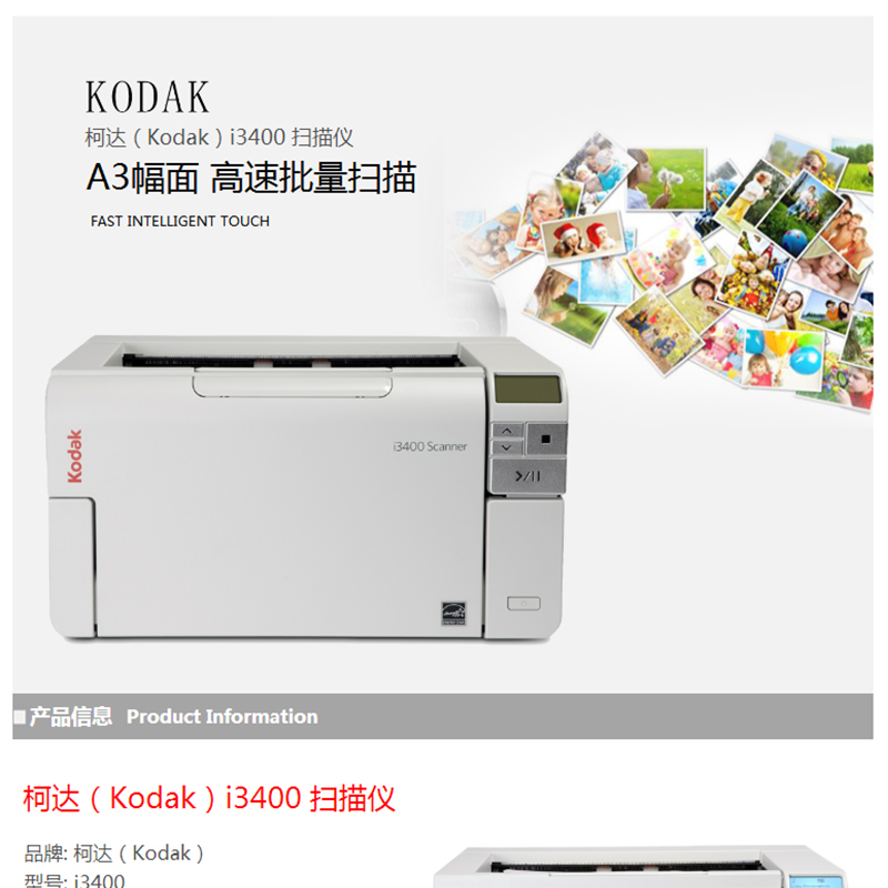 柯達(Kodak) i3400 A3幅面饋紙式掃描儀 快速自動進紙高掃雙面