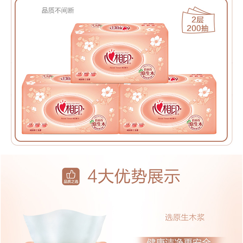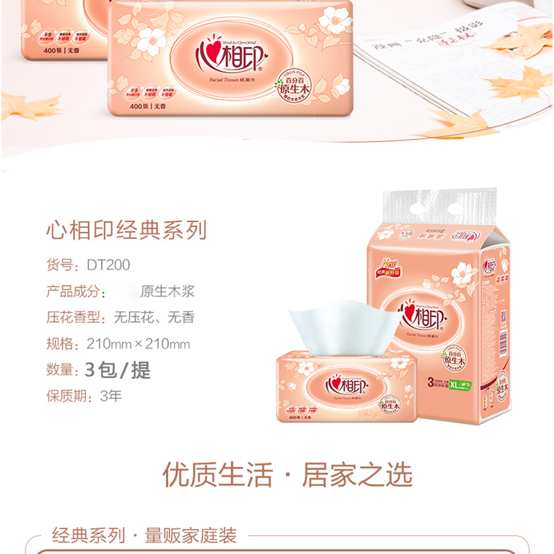 心相?。∕ind Act Upon Mind) DT200 花語(yǔ)系列軟包裝抽紙面巾紙餐巾紙200抽*3提